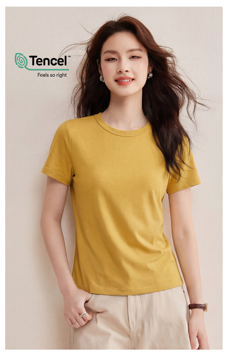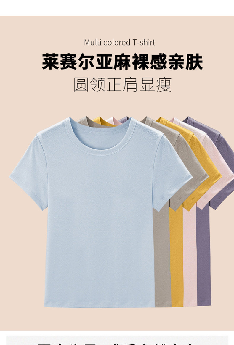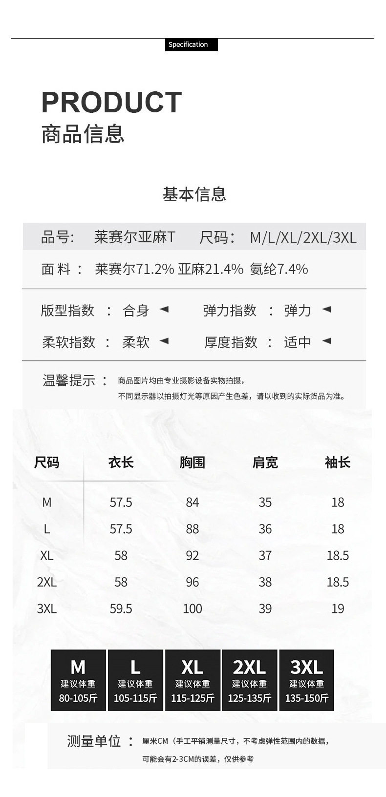 「自j」全新升级洛【铂金会员128/天猫169/差价41】(95238)诗琳莱赛尔天丝亚麻T恤女2026新款纯色圆领正肩短袖上衣