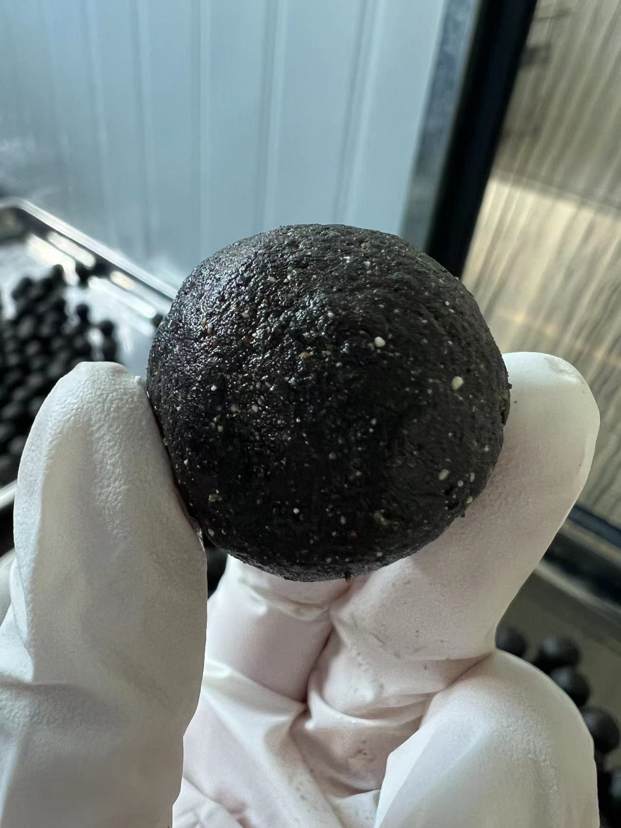 简单说,就是将九蒸九晒黑芝麻、茯苓薏仁米、赤小豆、蜂蜜5味食材,按中医食疗养生原理和经验配制,再一个个人工捏成丸子。别看它长得像黑芝麻丸,但实则营养更多且翻倍。
