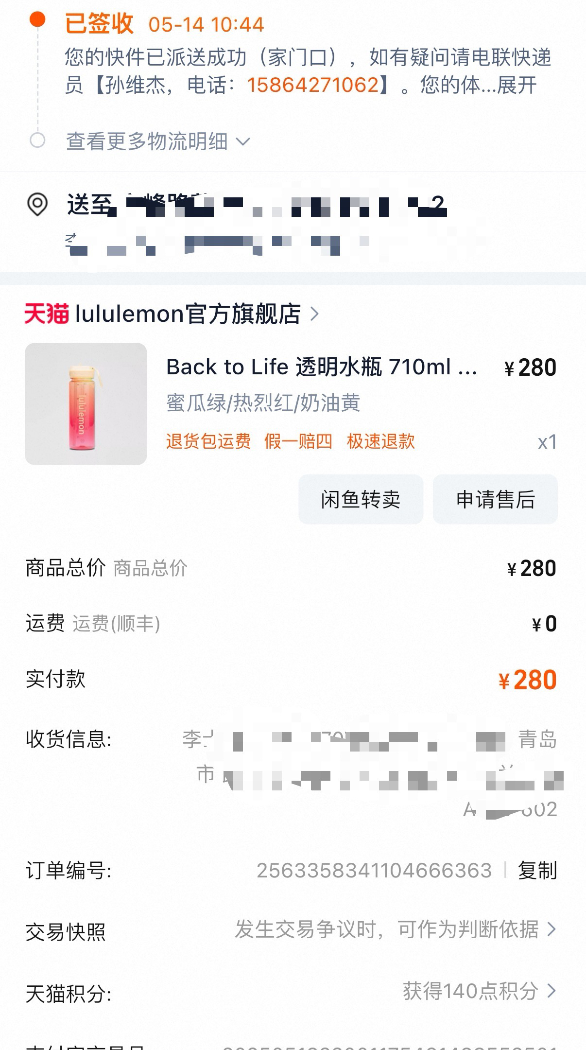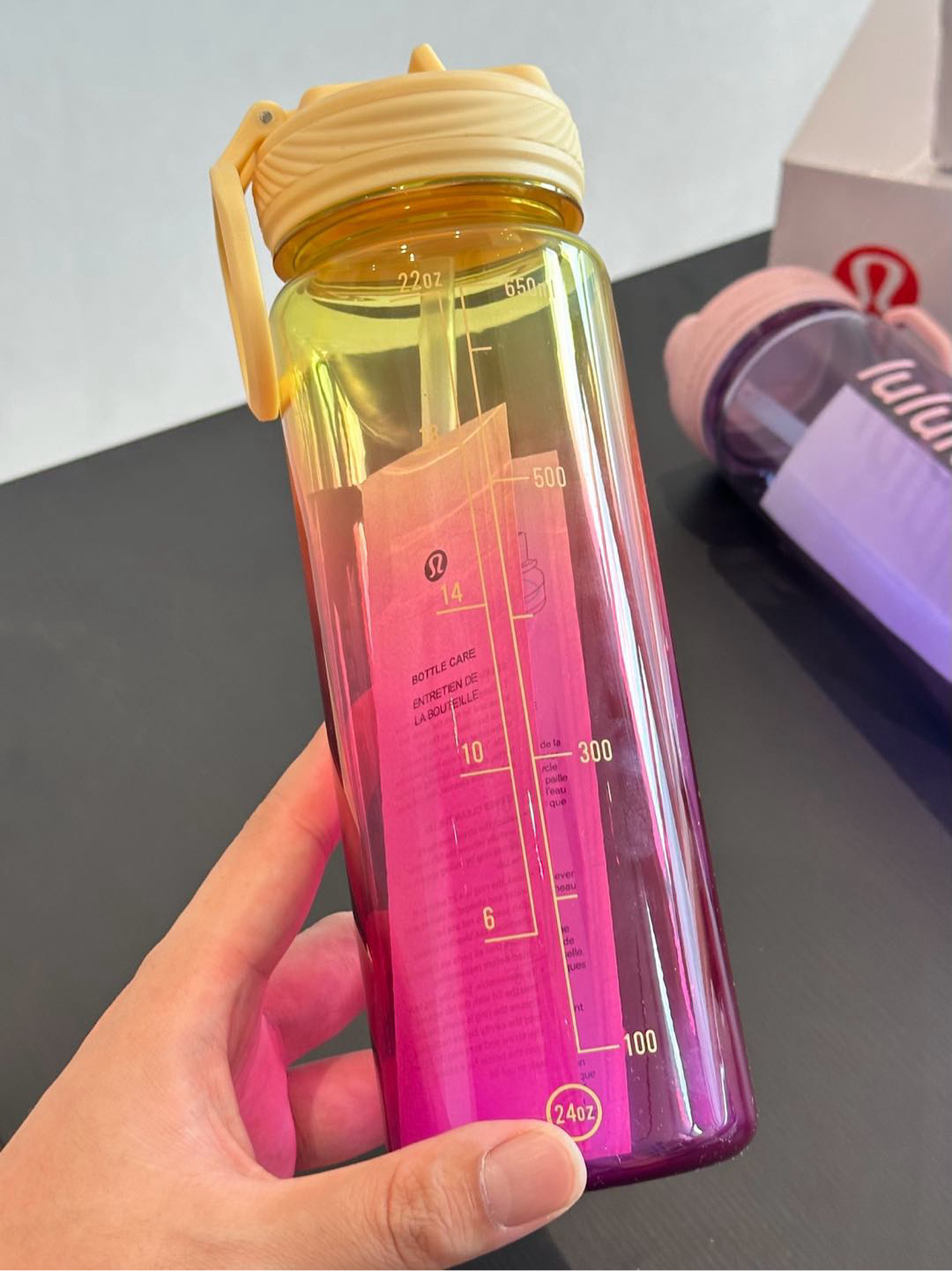 今年最后一款lulu水杯了,这次的配色太美了。还是650ml的大容量!运动日常都很实用,不仅于此,设计了方便携带的手提扣,以及环保♻️用料,冷热水可用,大品牌大家放心入!食品级用料,安全环保, 装水入口的东西,我们一定是用最好最贵的材料!日常使用即便不小心摔落,也能轻松抵御冲击力,不会轻易出现凹陷、扭曲等变形问题,经久耐用。