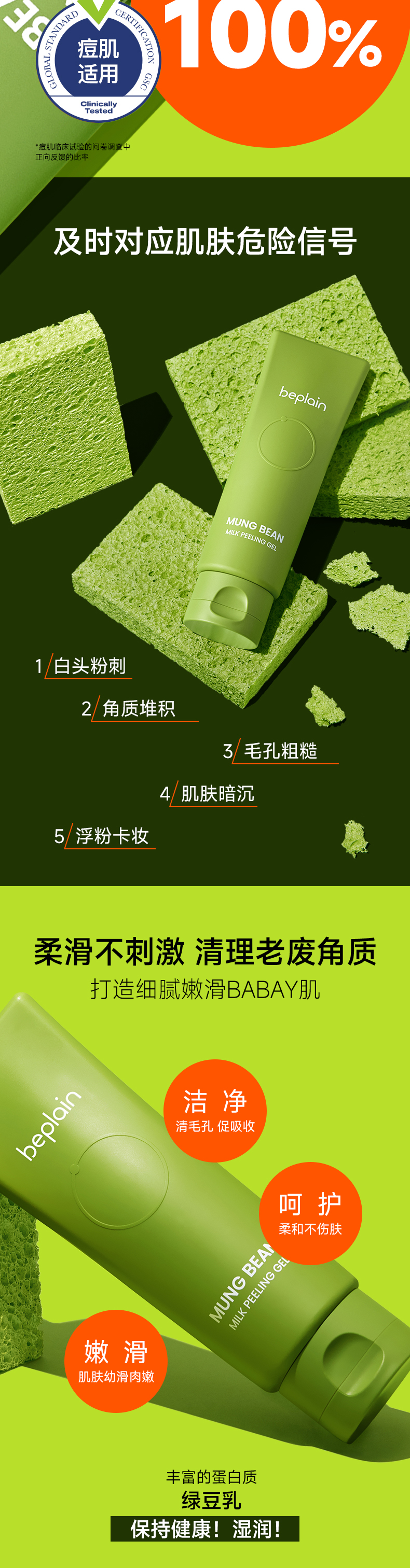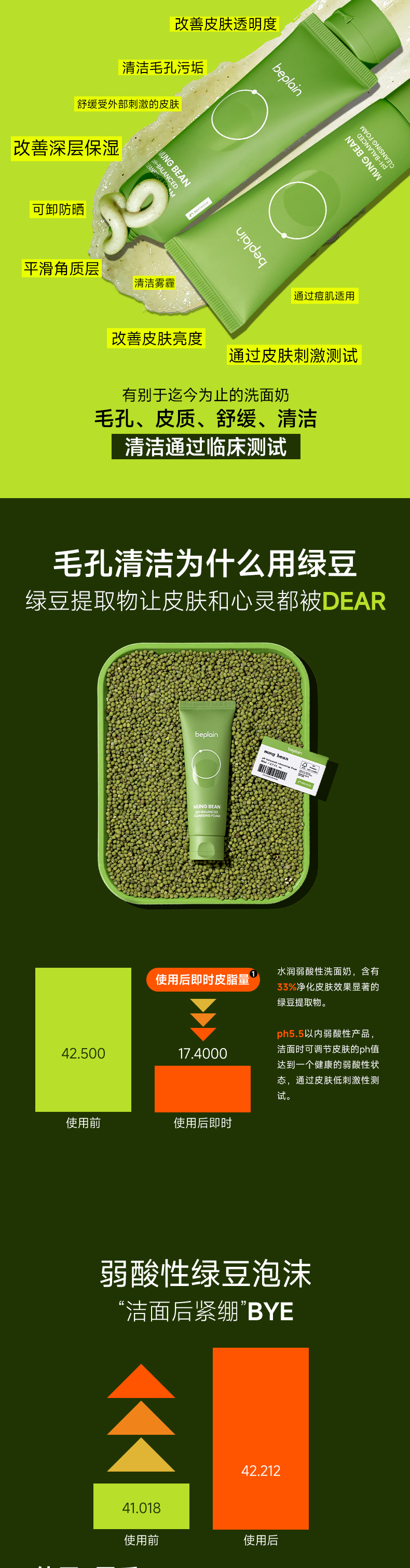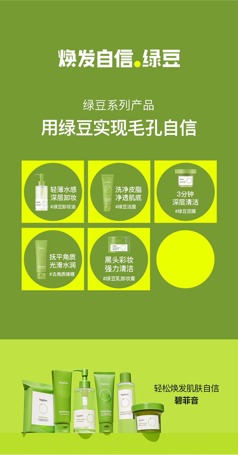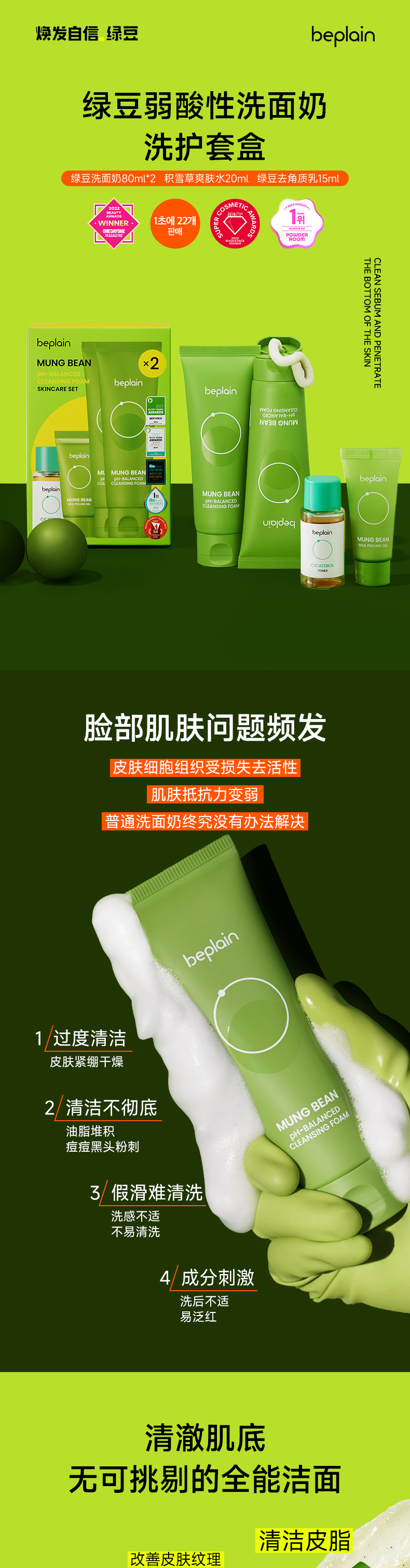 beplain碧菲音 绿豆洁面洗护套组洁面膏积雪草水去角质乳
