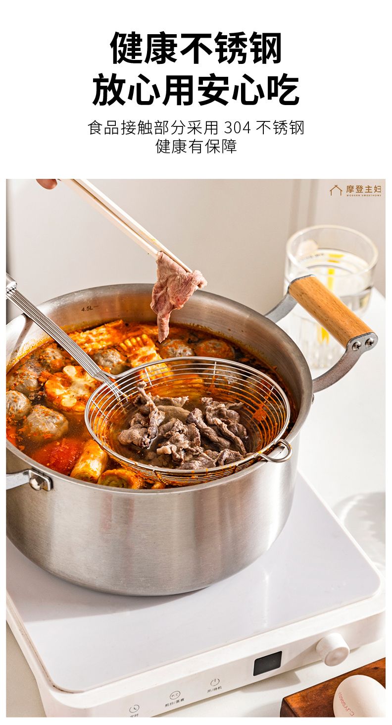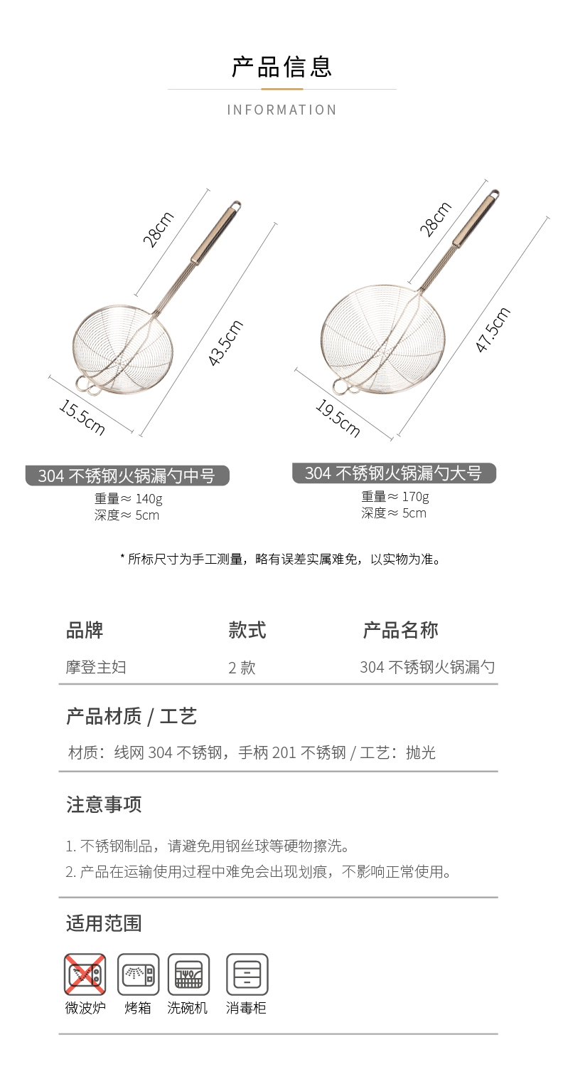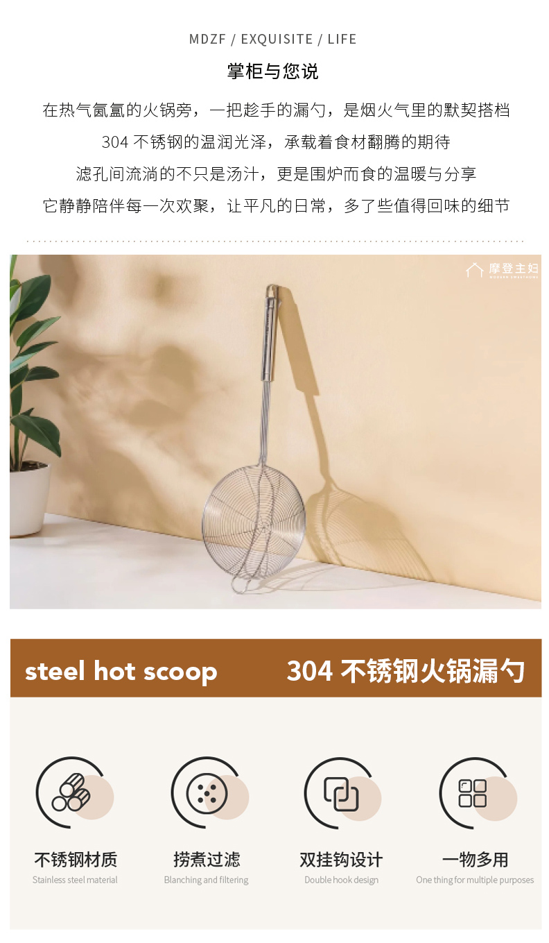 摩登主妇304不锈钢大漏勺厨房过滤漏网笊篱家用潮汕牛肉火锅捞勺