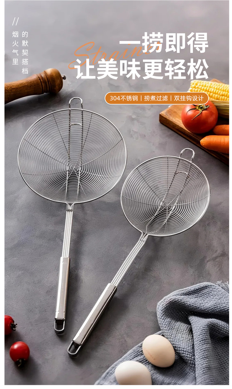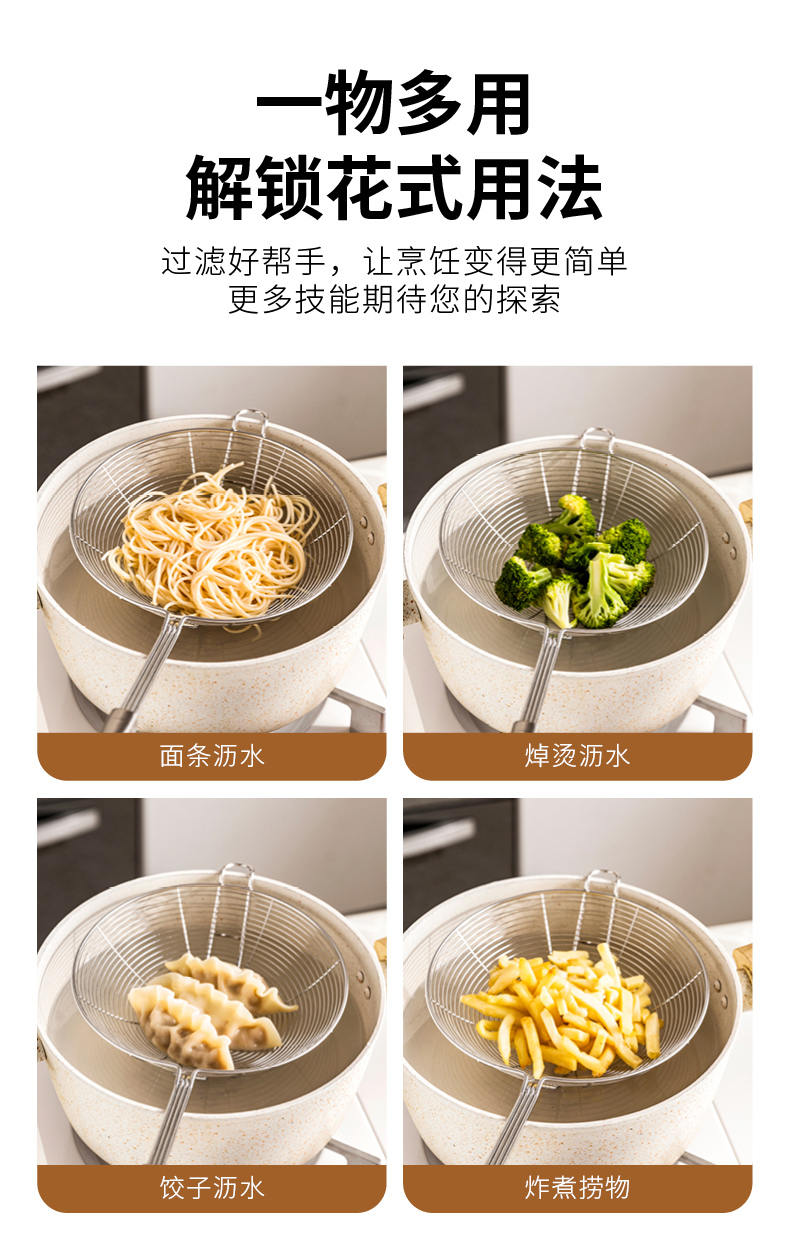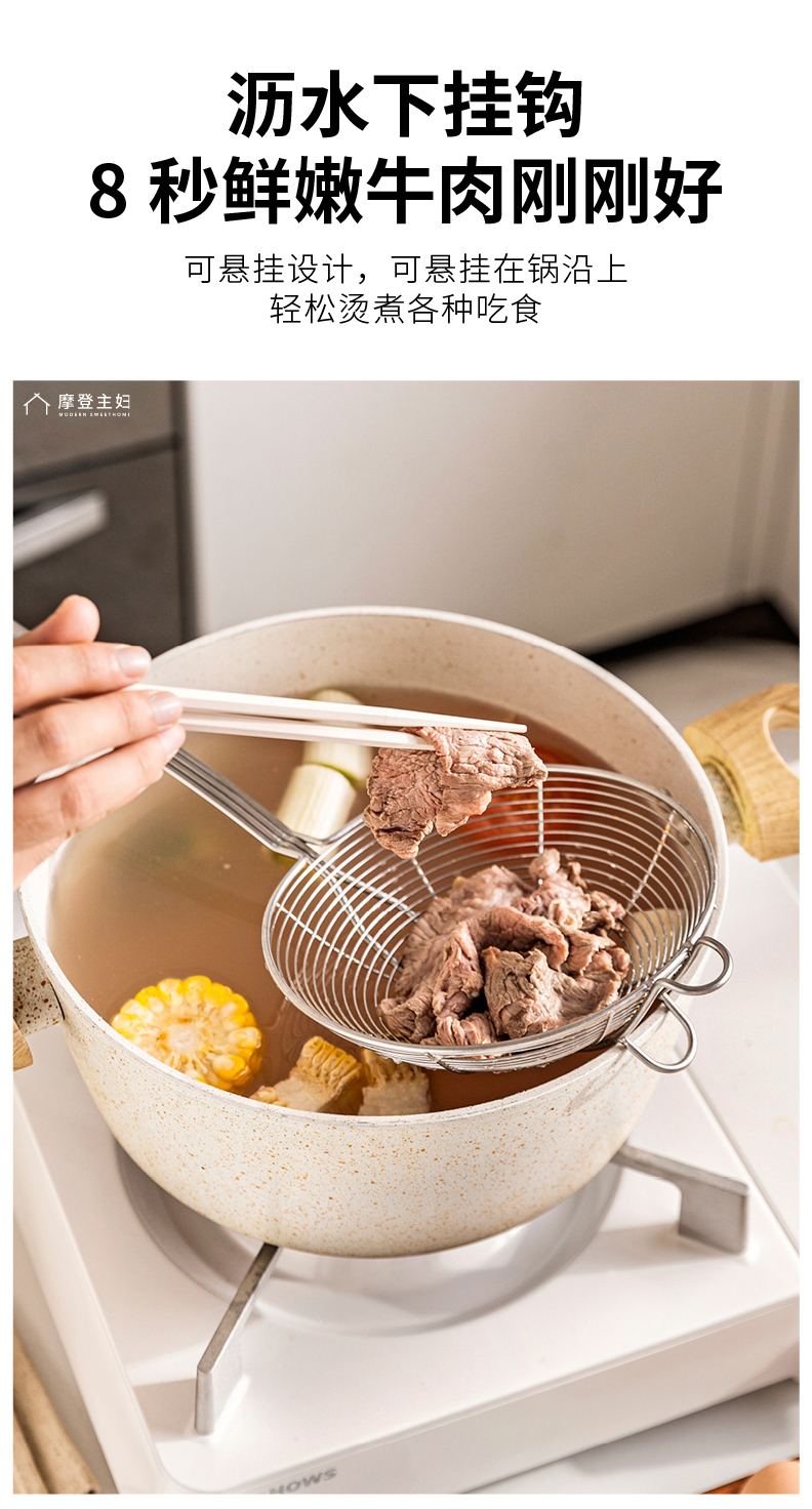 摩登主妇304不锈钢大漏勺厨房过滤漏网笊篱家用潮汕牛肉火锅捞勺