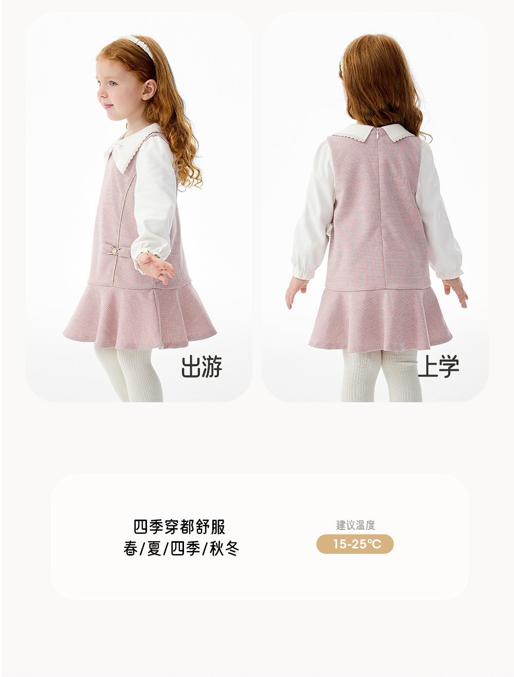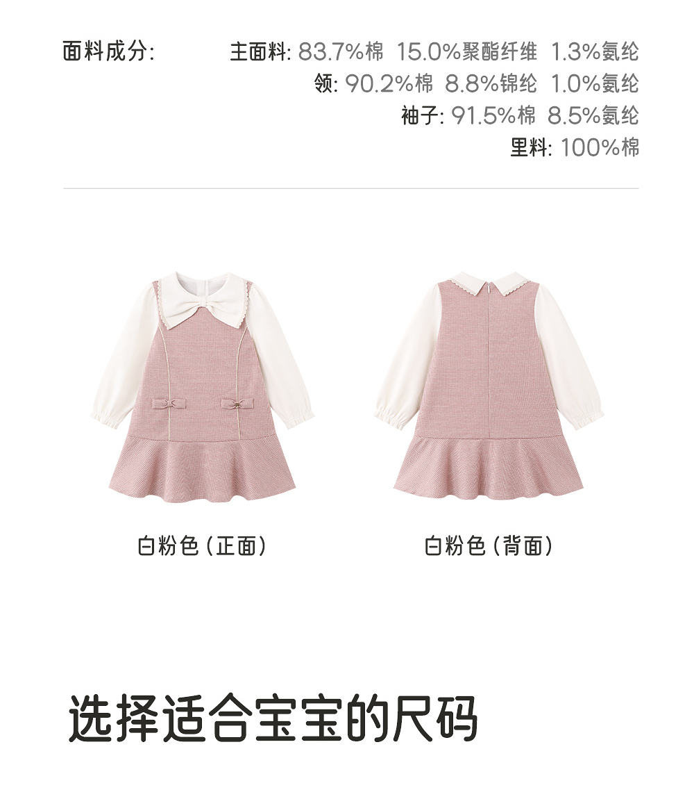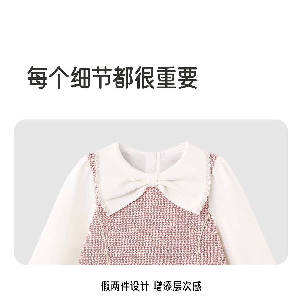 【商场同款】英氏女童连衣裙秋季女童长袖假两件裙子可爱女生裙子