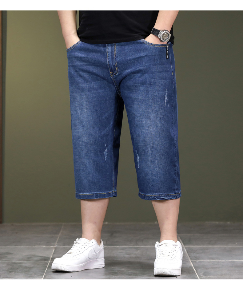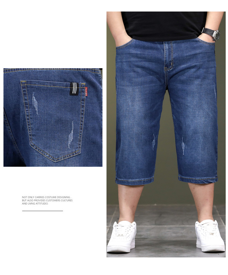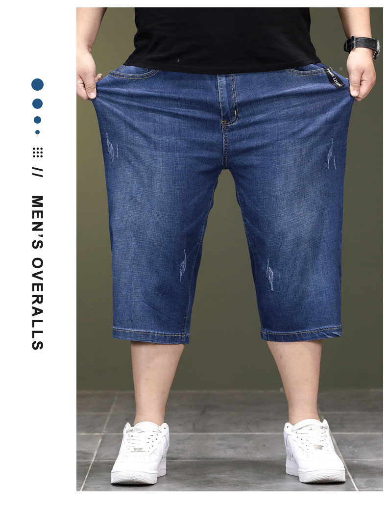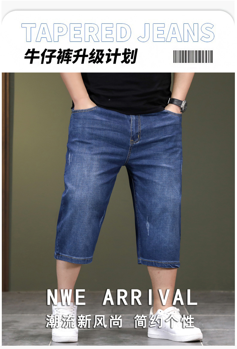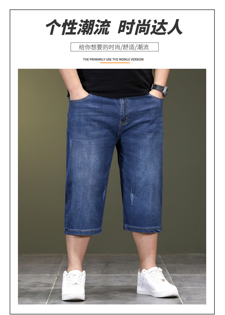 【DYG】大依优型大码牛仔七分裤牛仔短裤弹力宽松显瘦肥佬休闲男士夏加肥加大 商品图0
