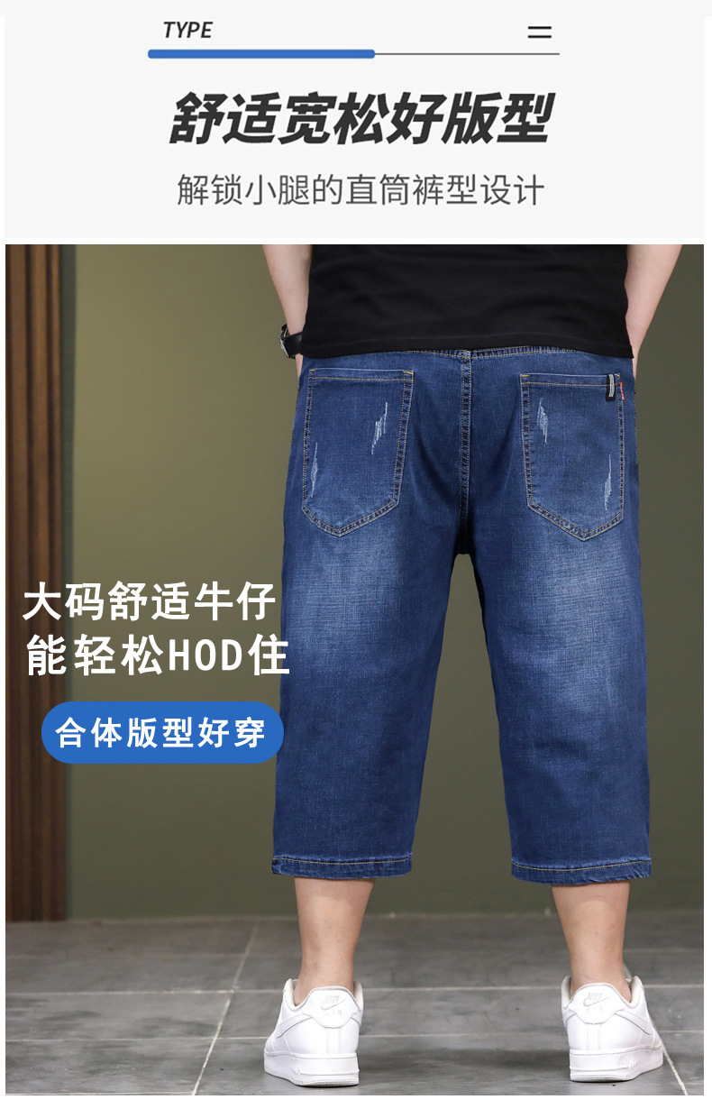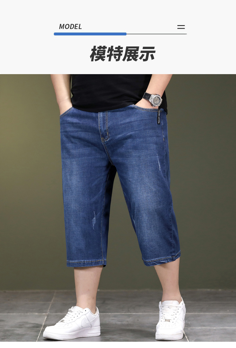 【DYG】大依优型大码牛仔七分裤牛仔短裤弹力宽松显瘦肥佬休闲男士夏加肥加大 商品图4