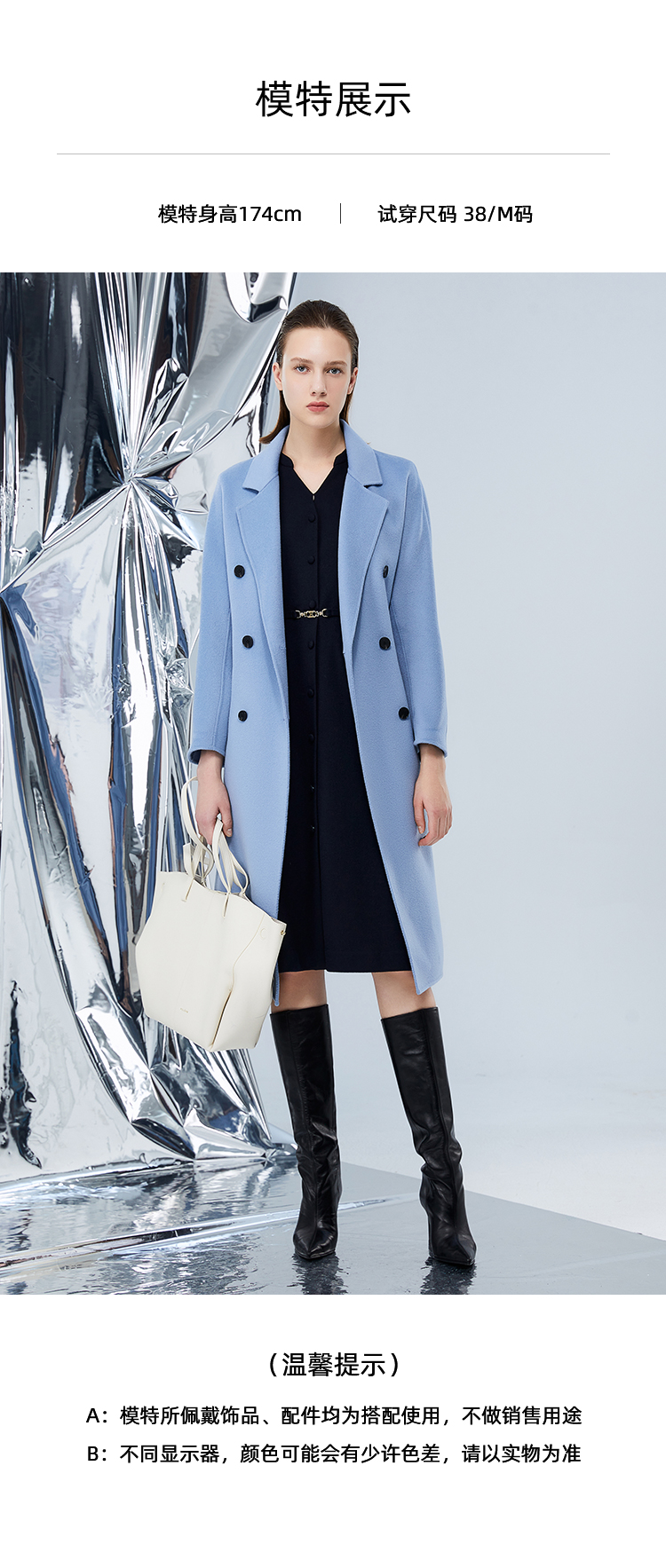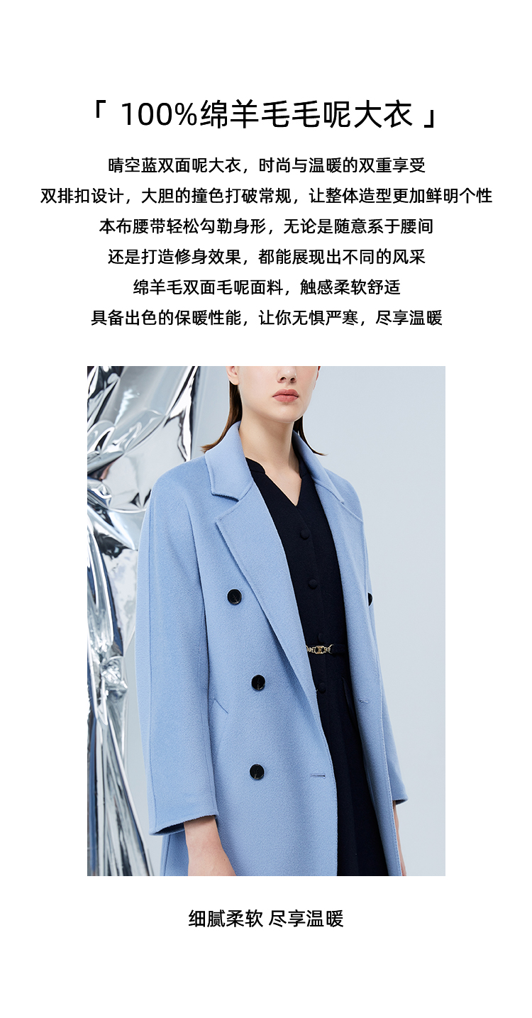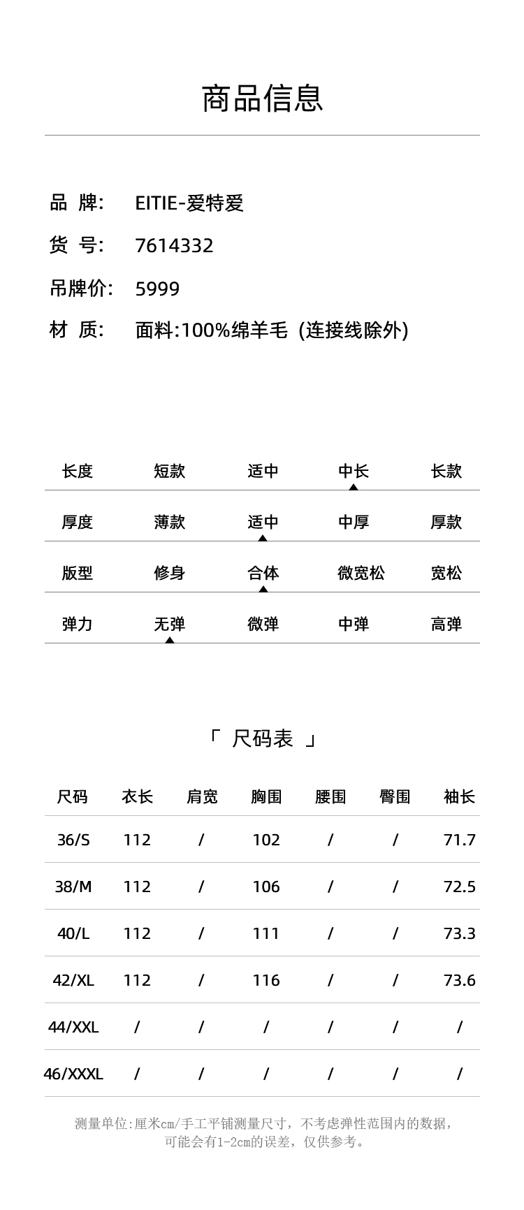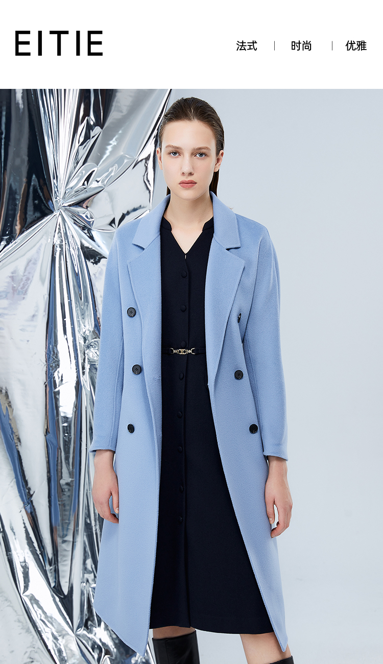 EITIE爱特爱冬季新款款通勤修身纯色中长款显瘦毛呢外套7614332