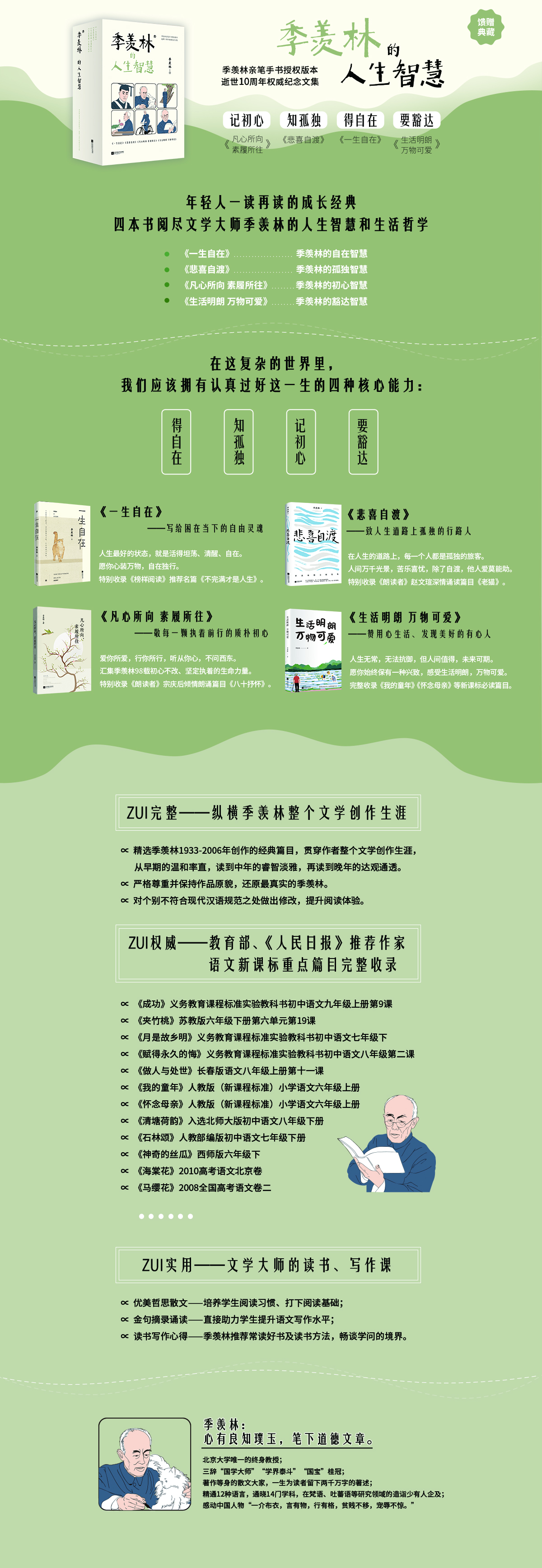 【限量前3000套,赠月历卡】《季羡林的人生智慧》4册,(季羡林亲自手书授权本,林青霞推荐)