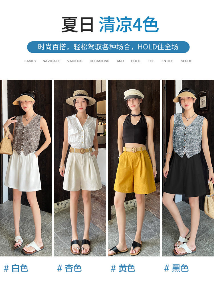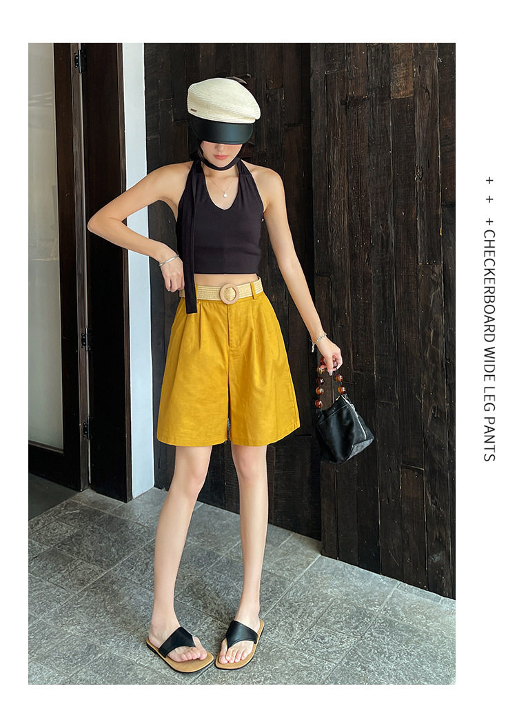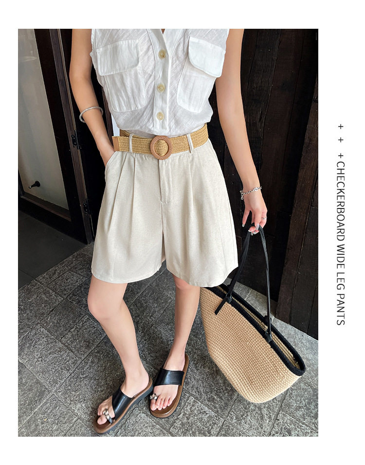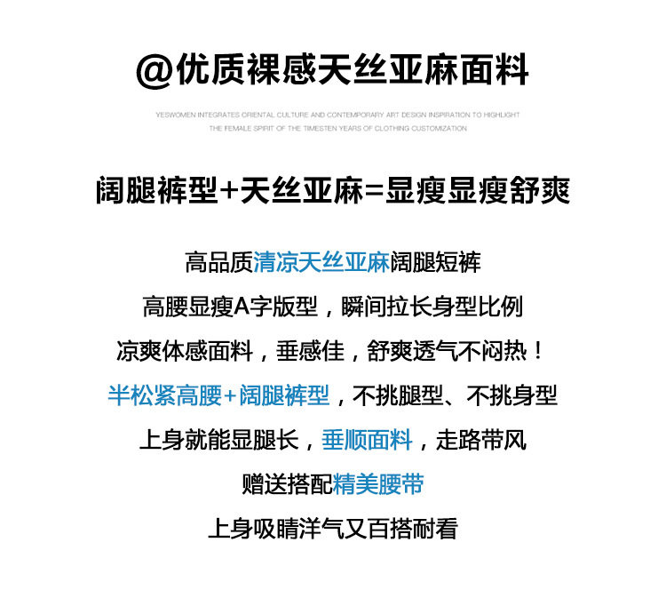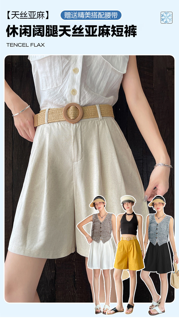 2026夏季新款天丝亚麻五分裤阔腿裤女装短裤薄款棉麻高腰显瘦裤子 NDK-J5016