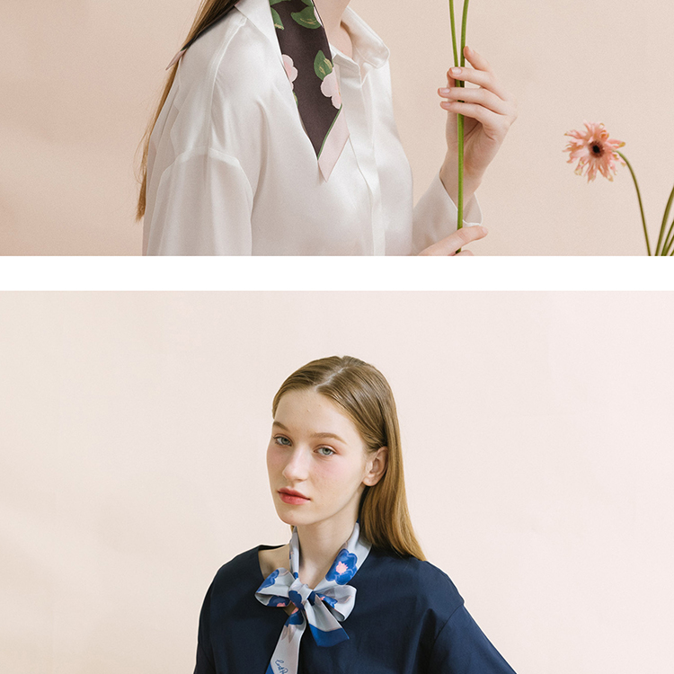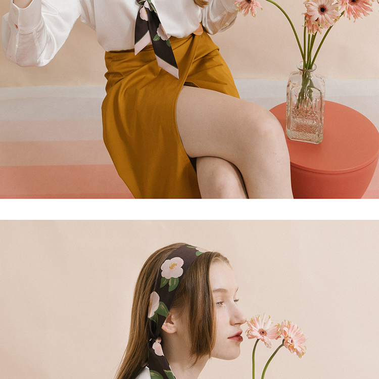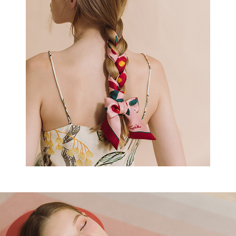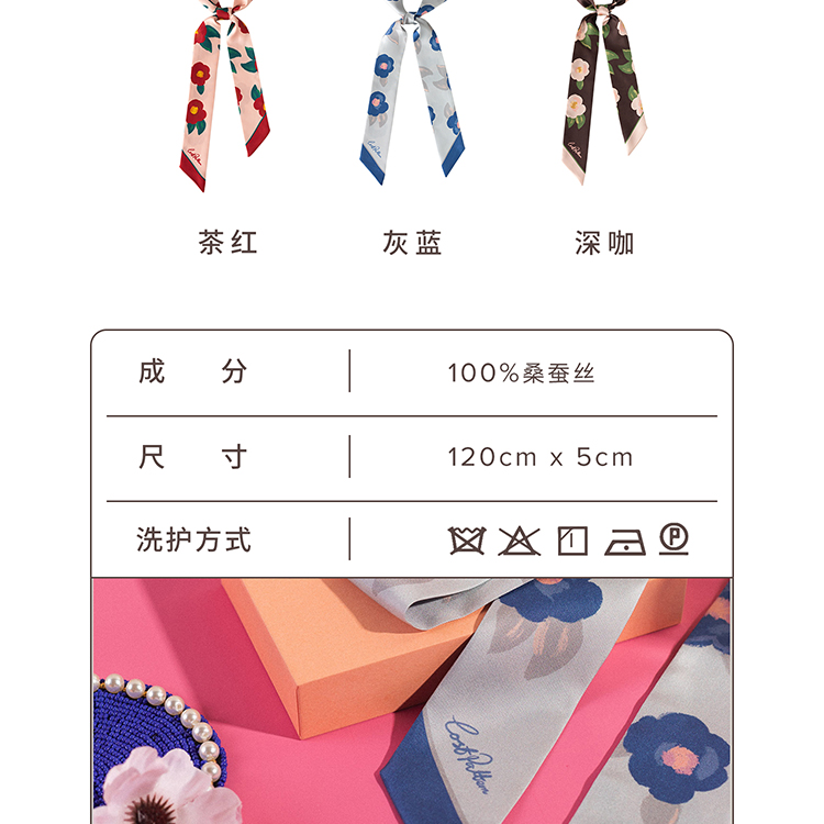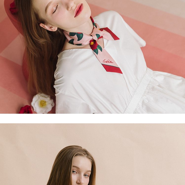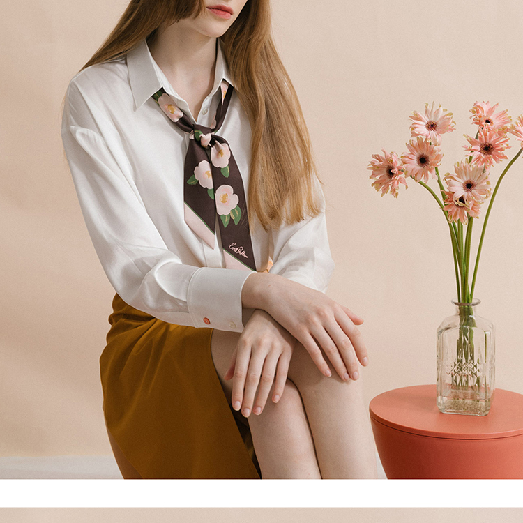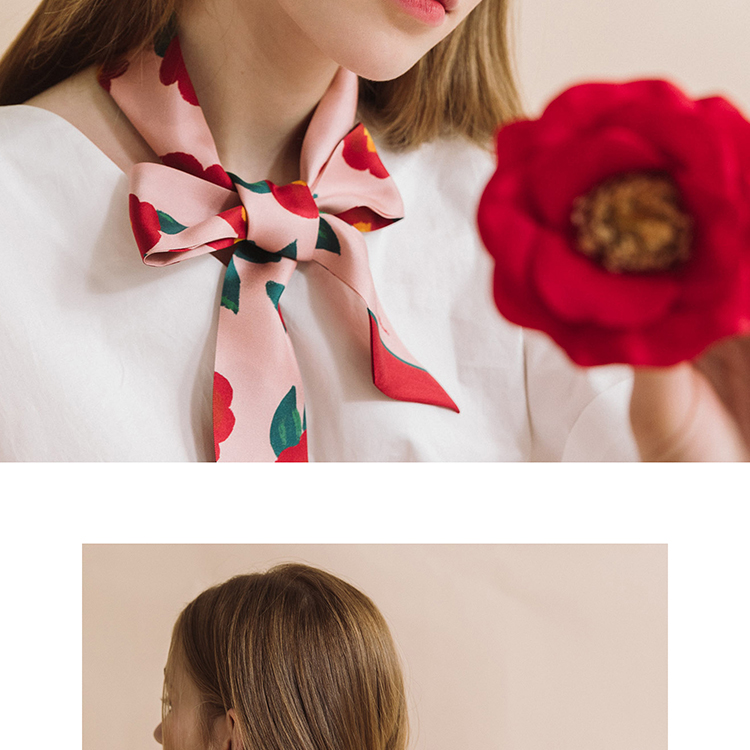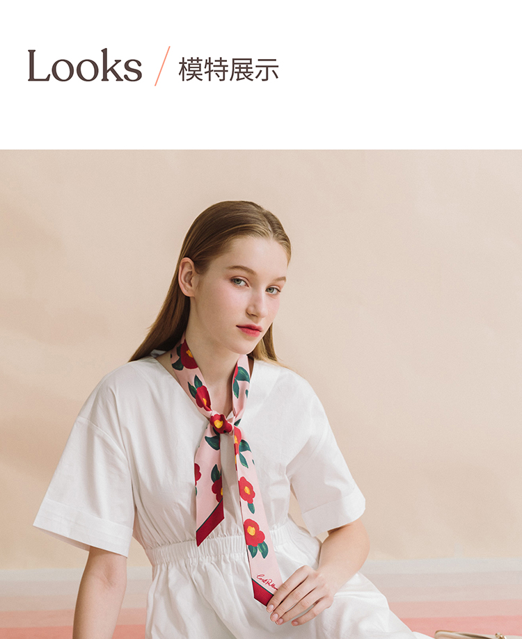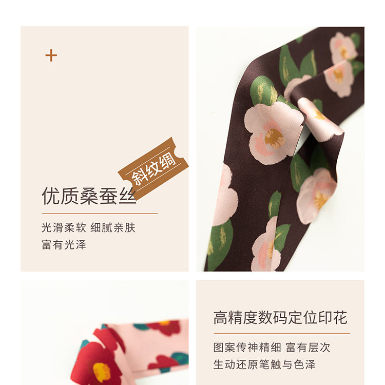 双成记 山茶花斜纹窄丝巾