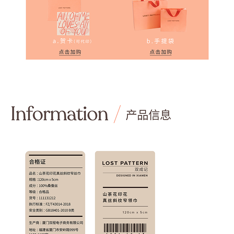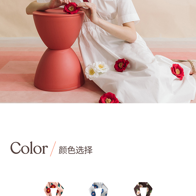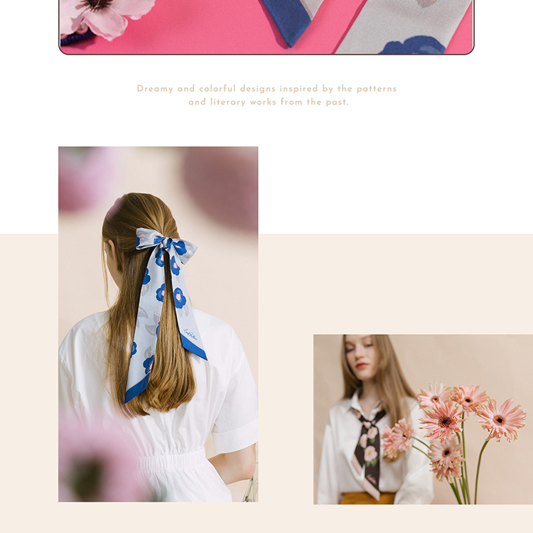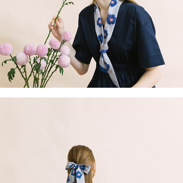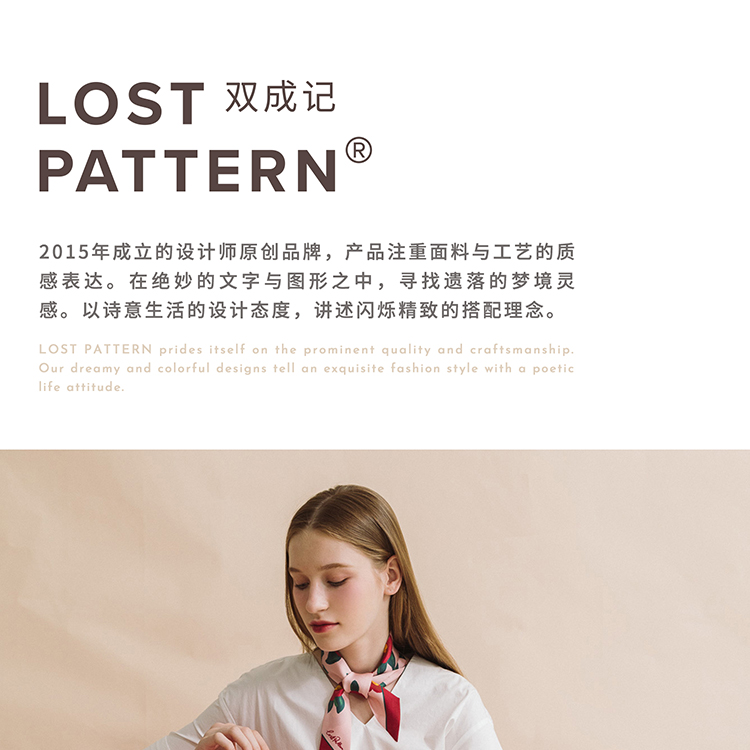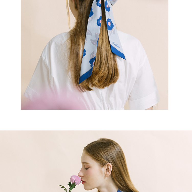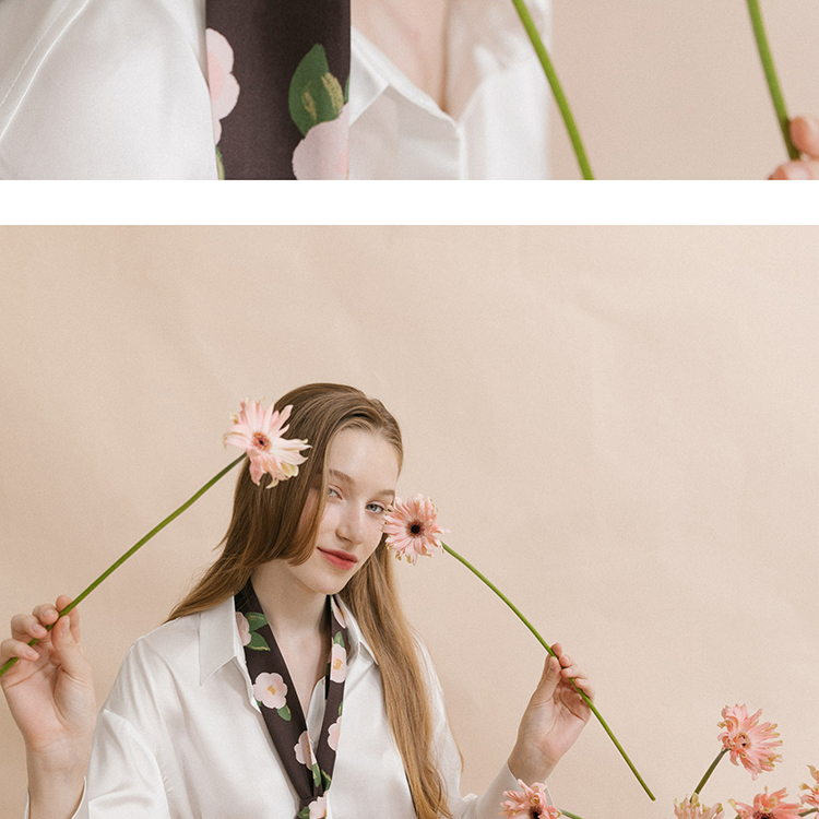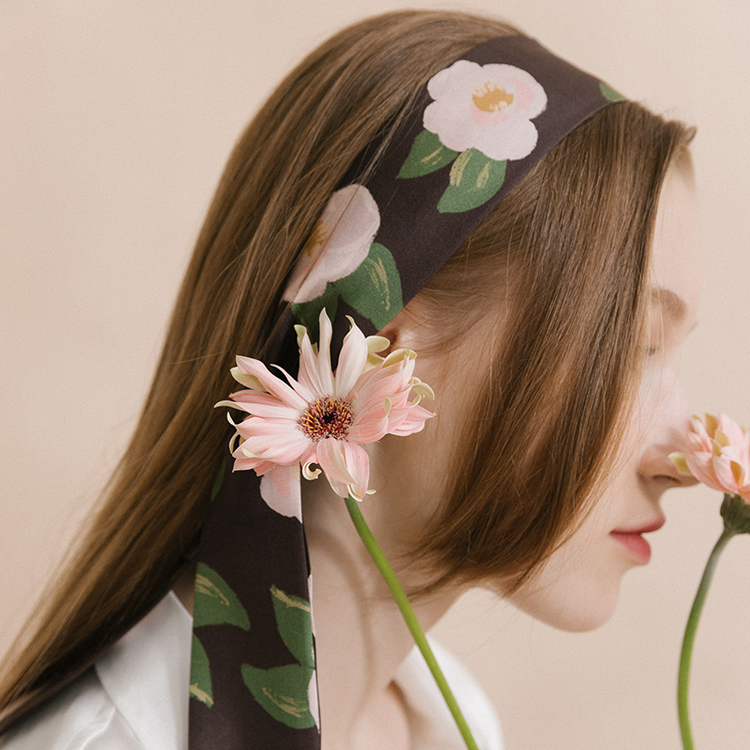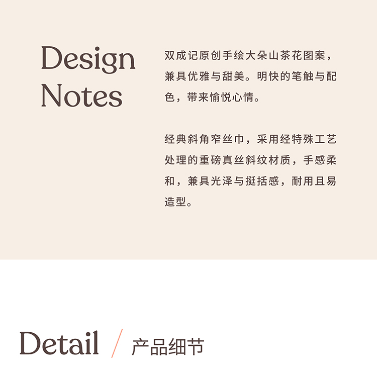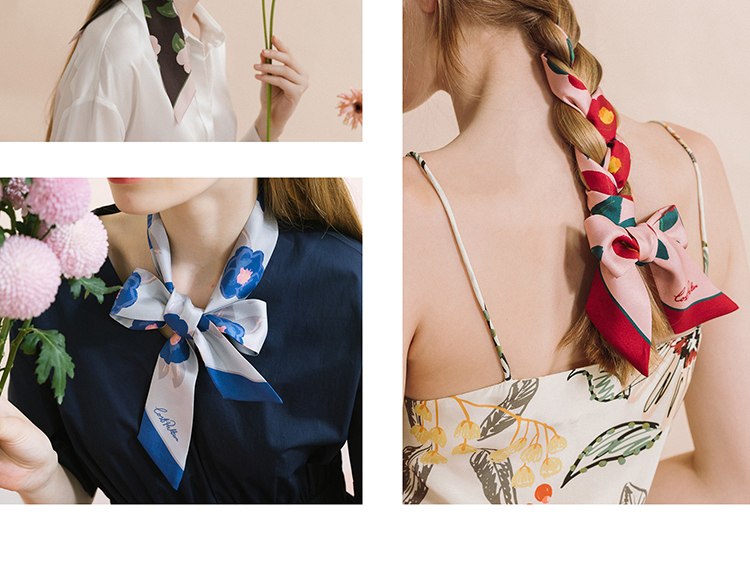 双成记 山茶花斜纹窄丝巾