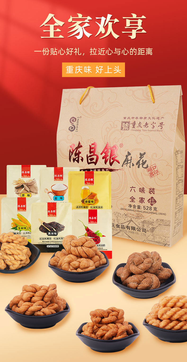 陈昌银【全家福礼盒】528克6味送亲友送礼佳品特产麻花礼盒