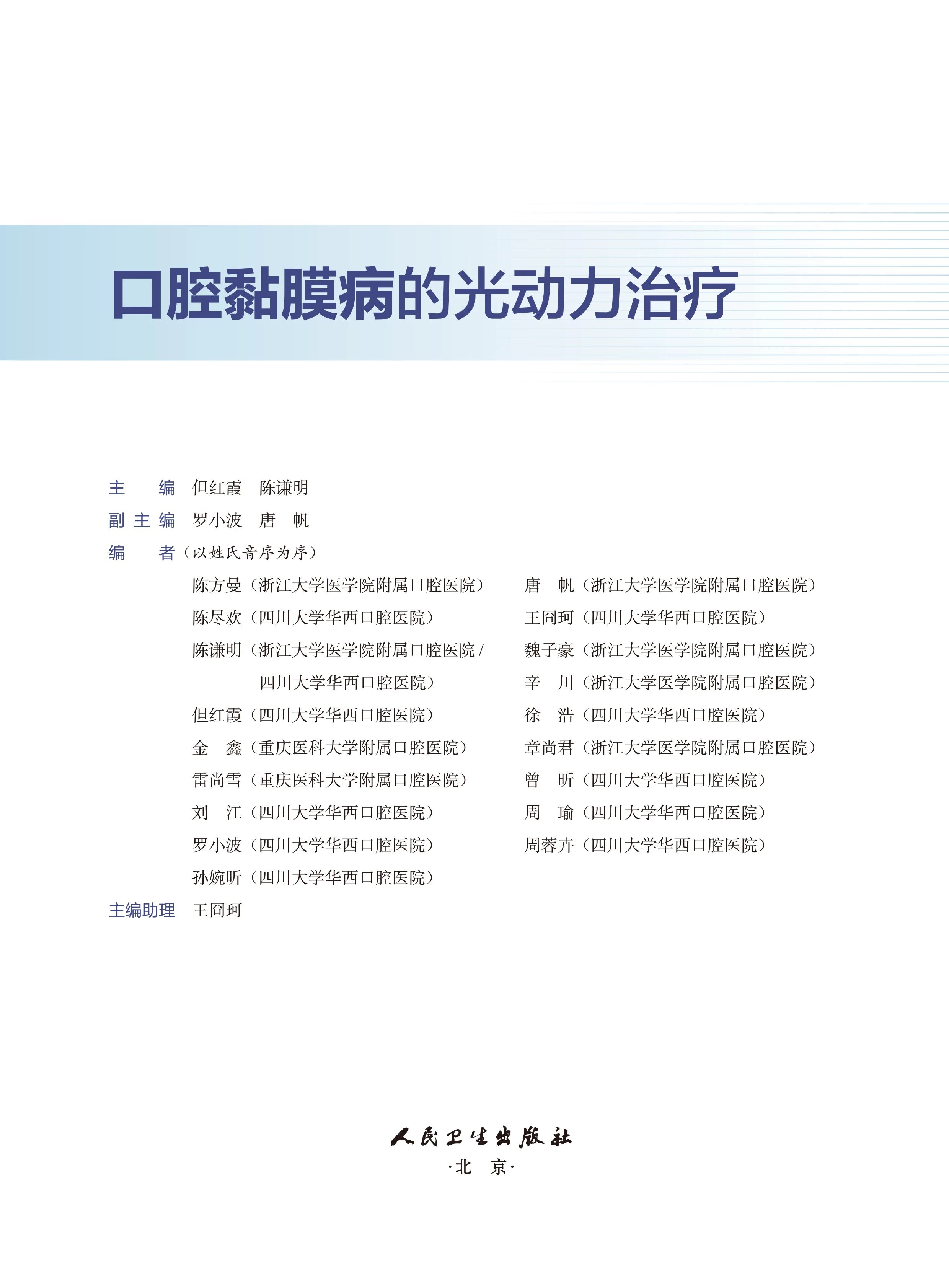 1主编但红霞教授(华西口腔)和陈谦明教授(华西口腔/浙大口腔)团队共同编写的目前国内首部重点关注口腔黏膜病光动力治疗的专著。