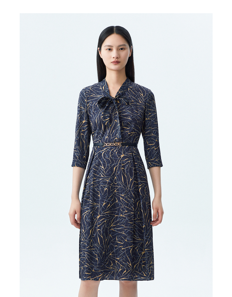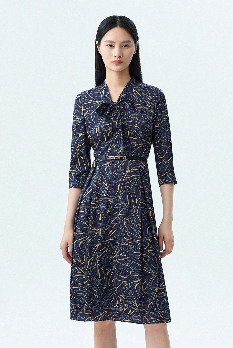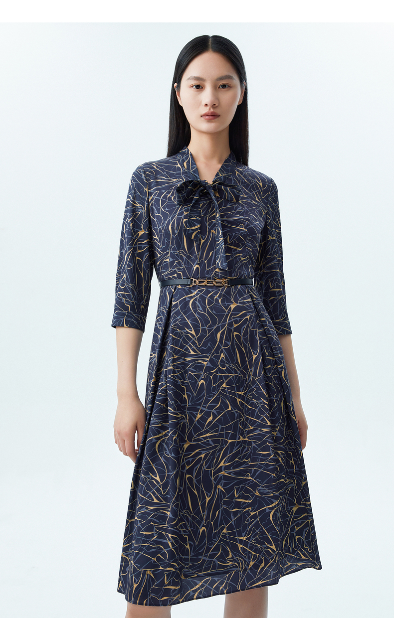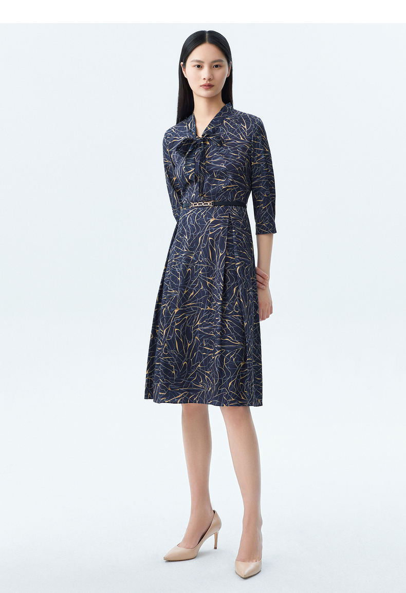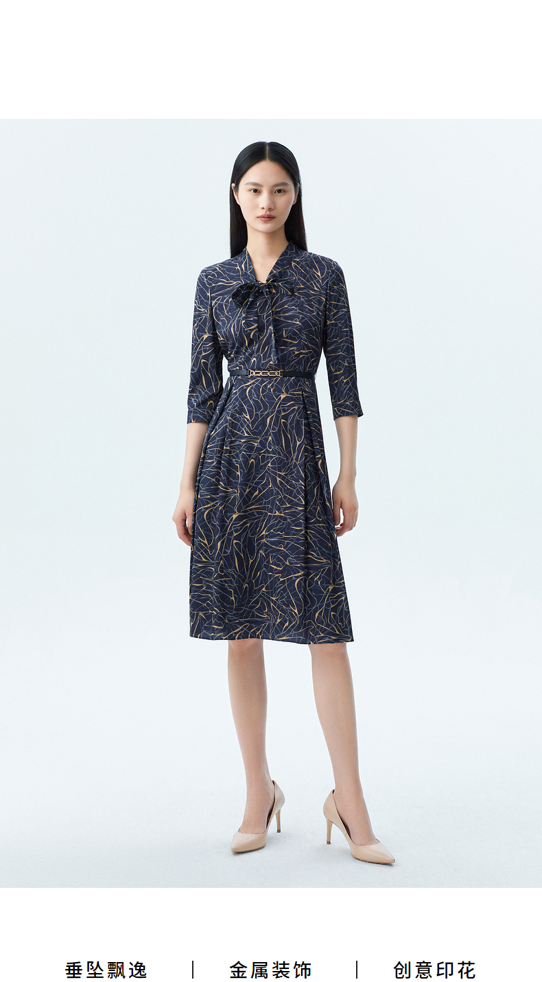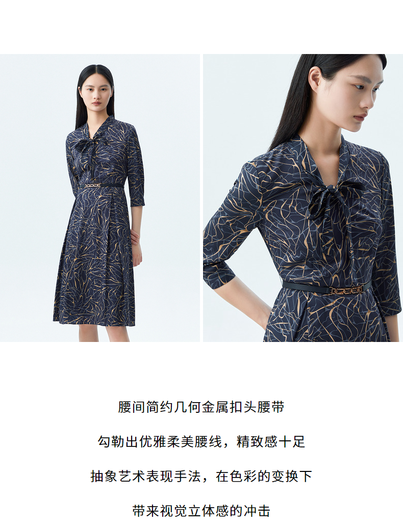L1朗姿收腰显瘦印花飘带连衣裙 LCSP01WOP112