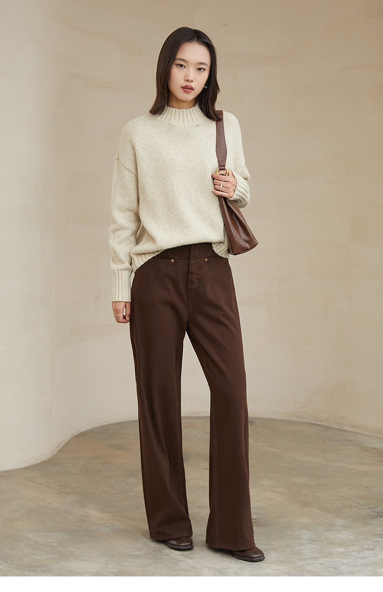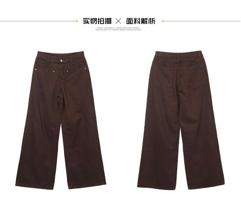 秋冬新款深棕色高腰阔腿裤 复古明线设计宽松显瘦休闲裤 百搭垂感直筒长裤