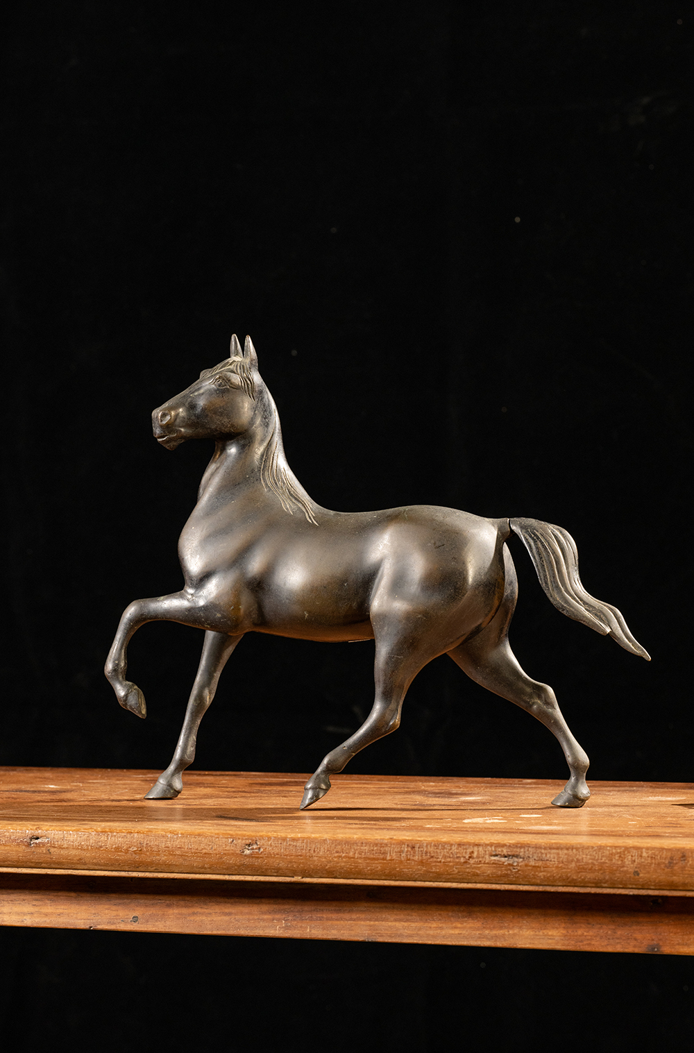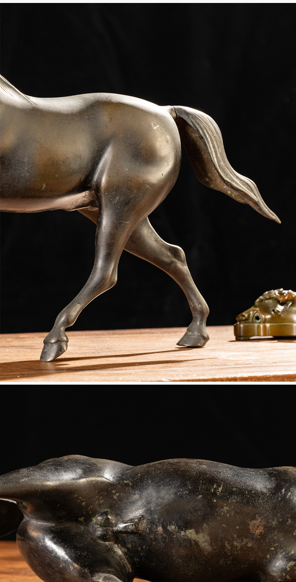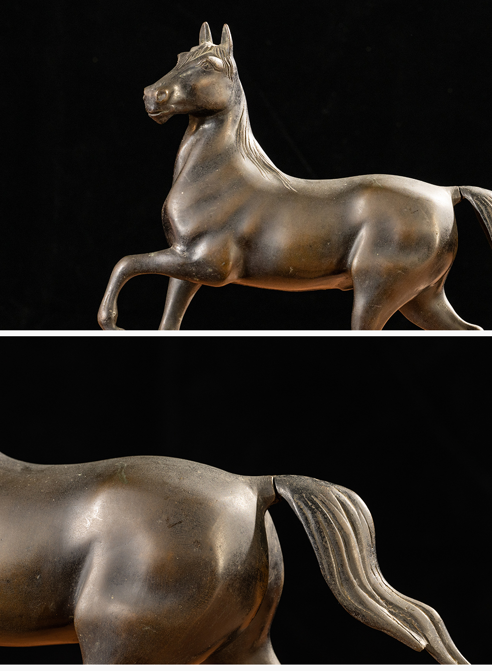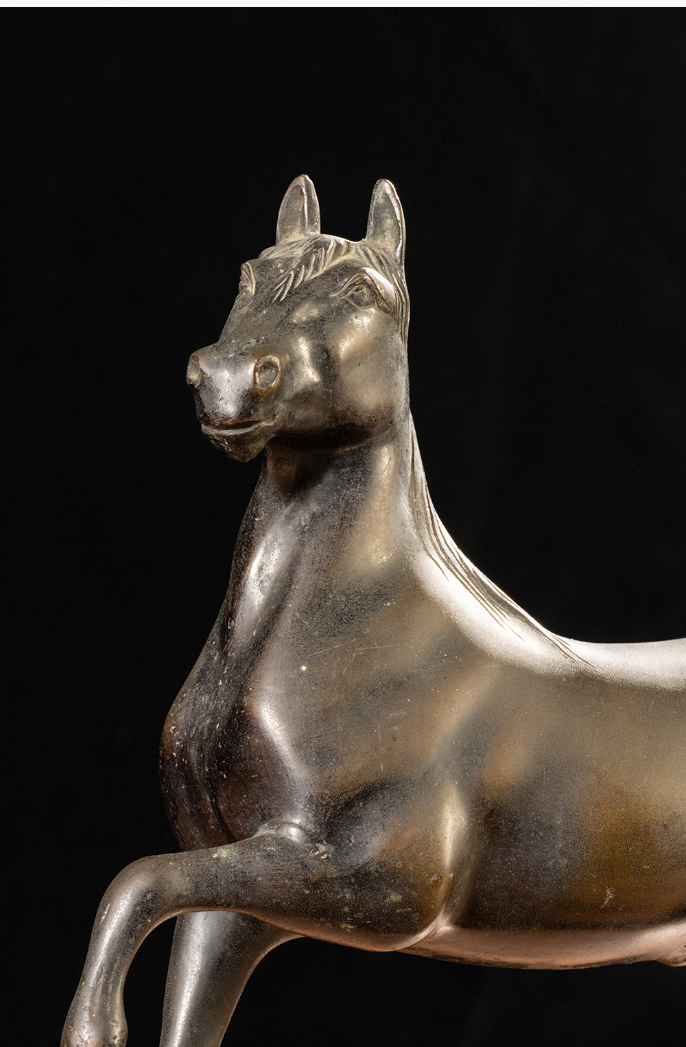 清 铜龙纹冲天耳三足鼎式炉(楠木盖座)
