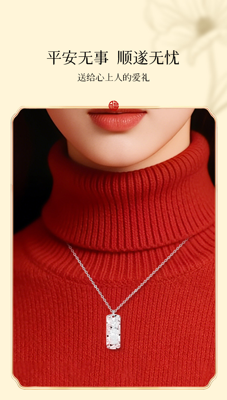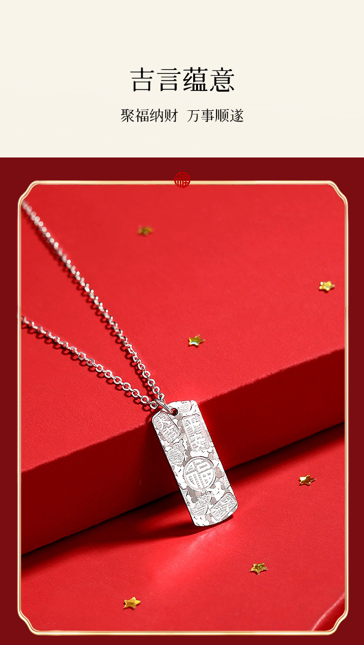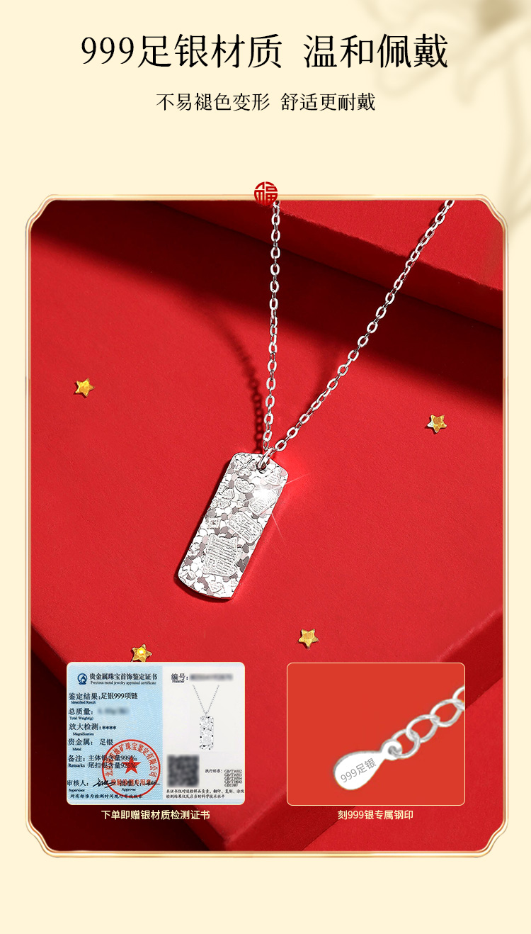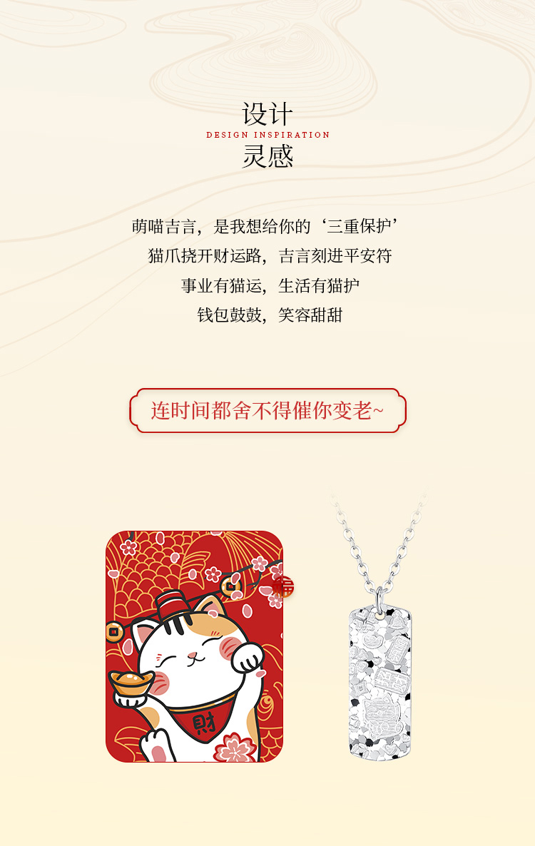Winy 足银 999 萌喵聚财项链 银色长牌吊坠含喜乐招财纹 配证书足银饰品女款