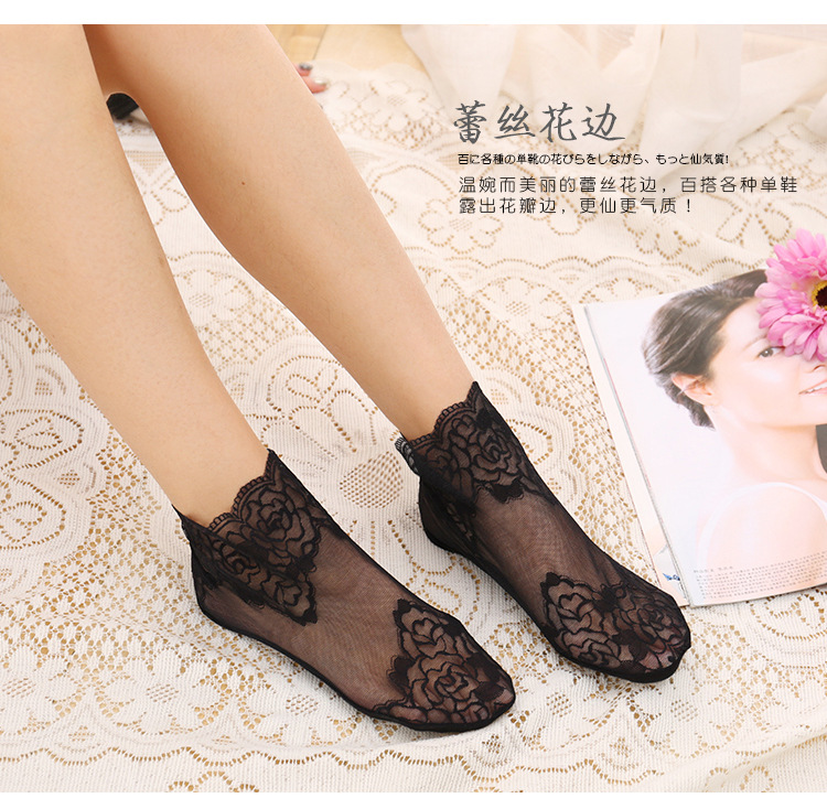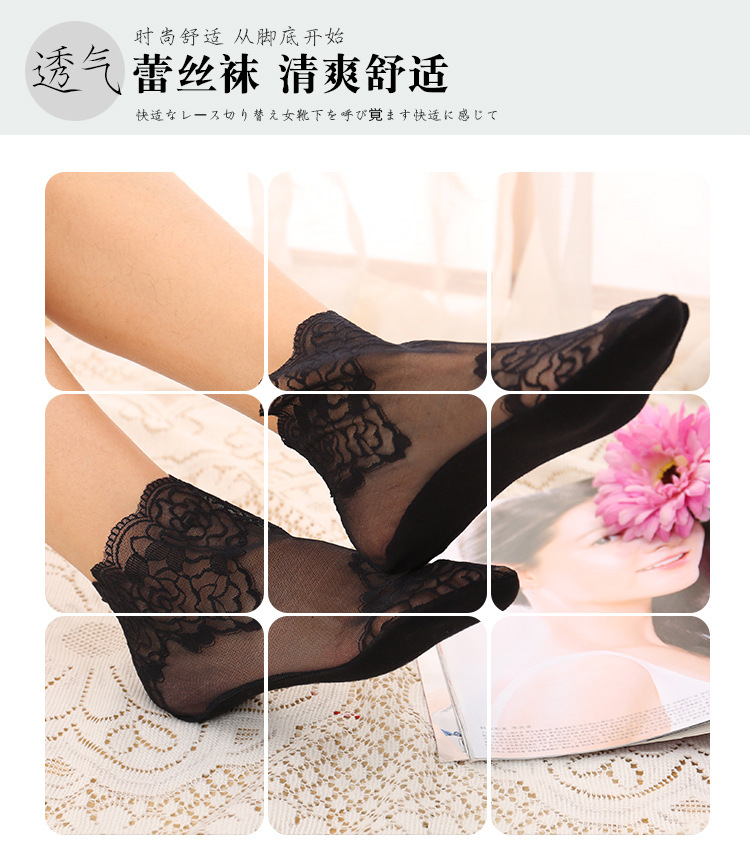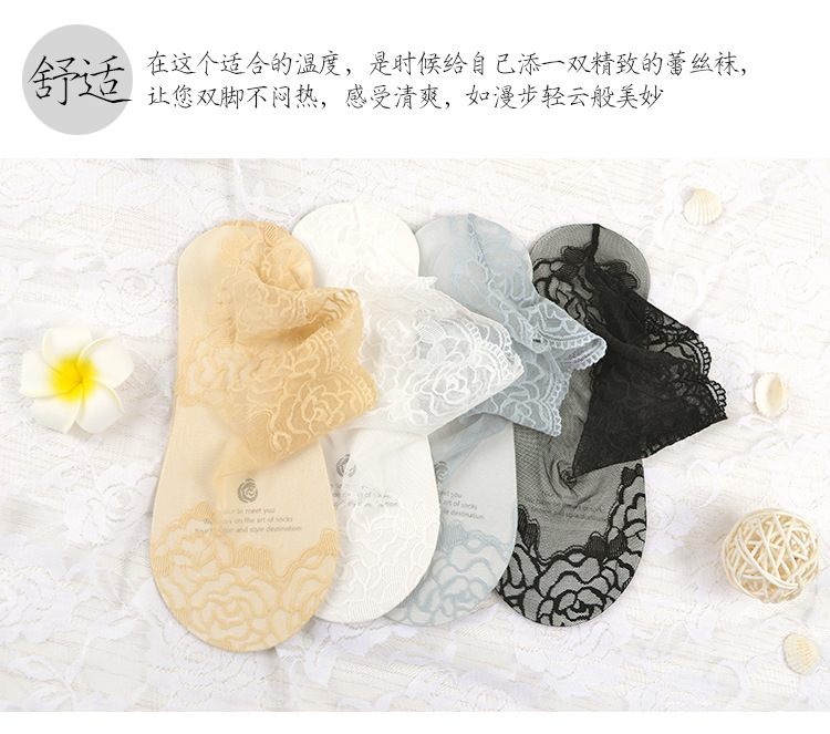 TP-590新款薄棉中筒丝袜防滑隐形蕾丝花边短袜 TZW