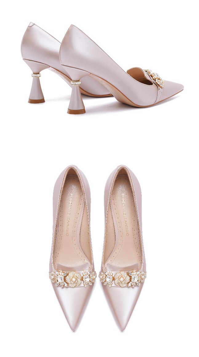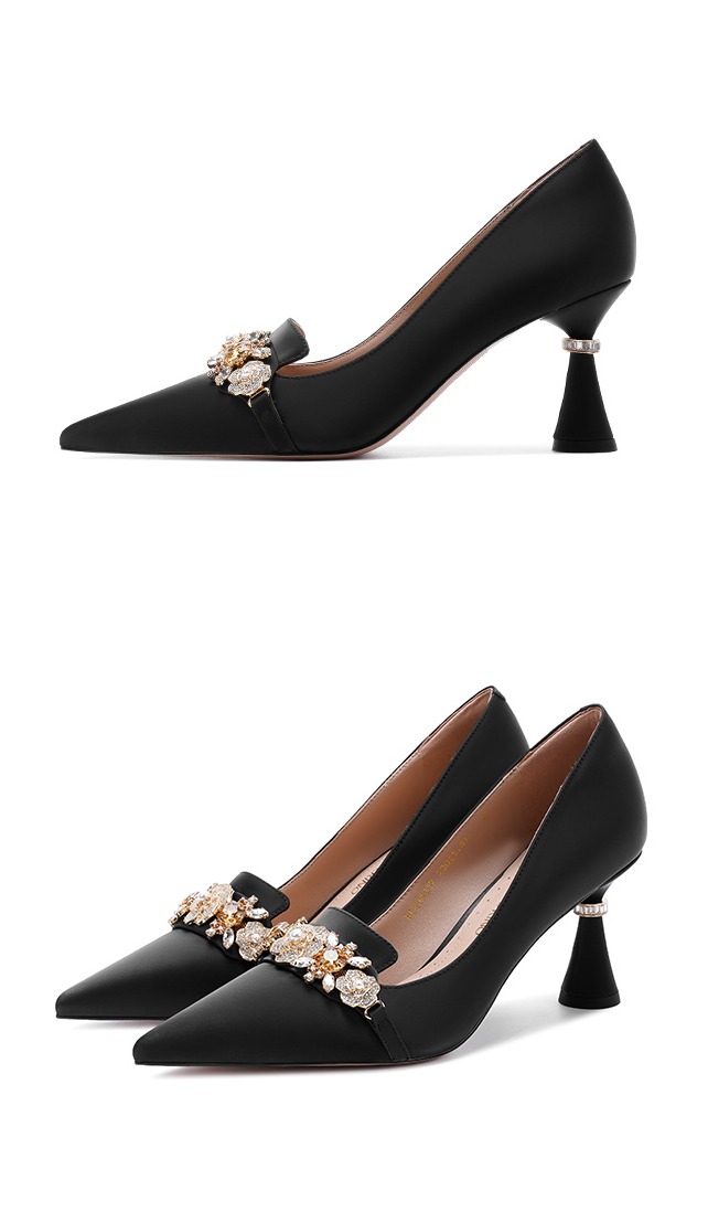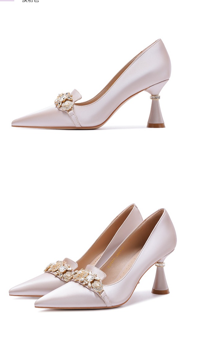 诺贝达尖头水钻高跟鞋气质粗跟婚鞋宴会婚礼通勤浅口单鞋