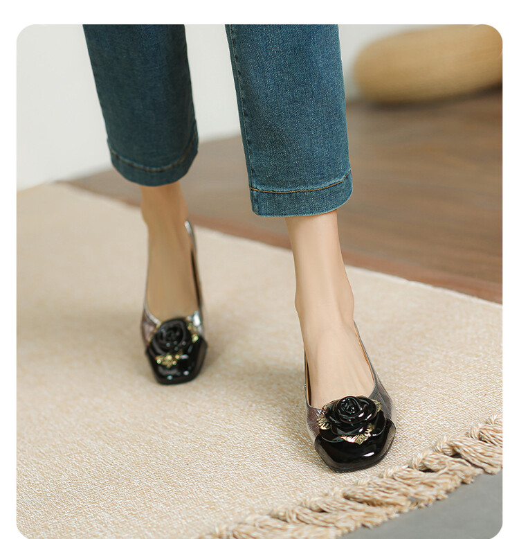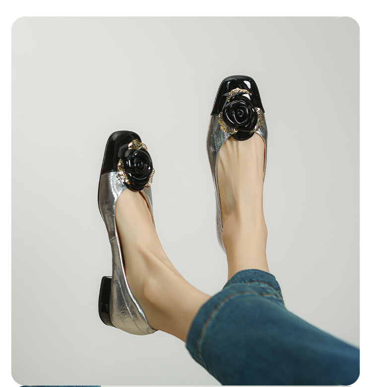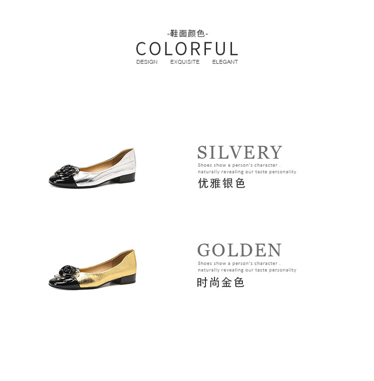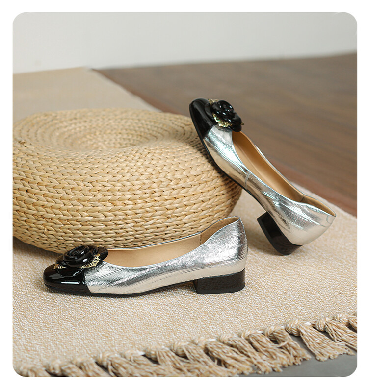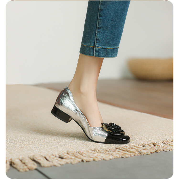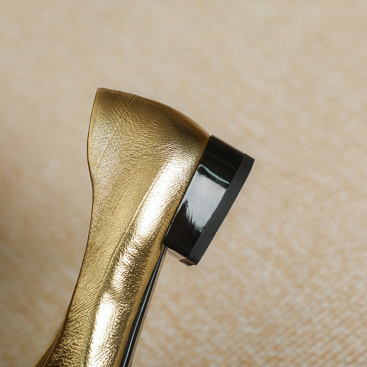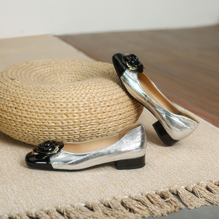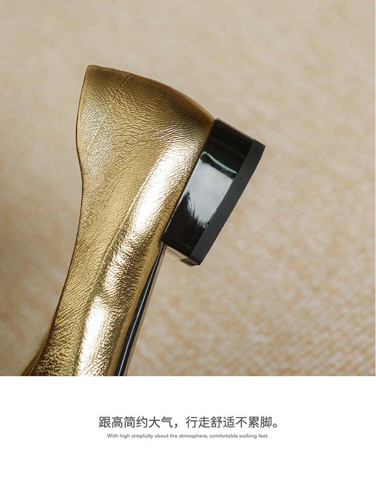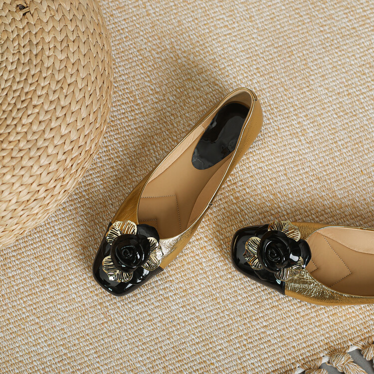 【预售5天】软底金色花朵拼色尖头单鞋女低跟浅口小皮鞋春夏新款法式气质女鞋MBJR&677-1