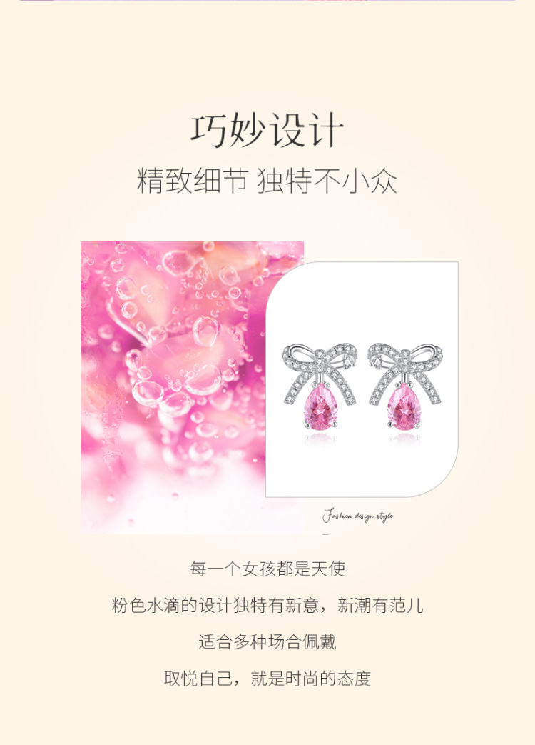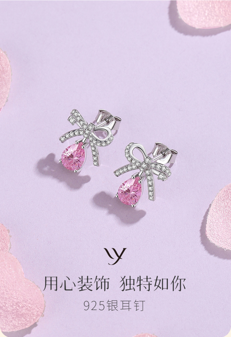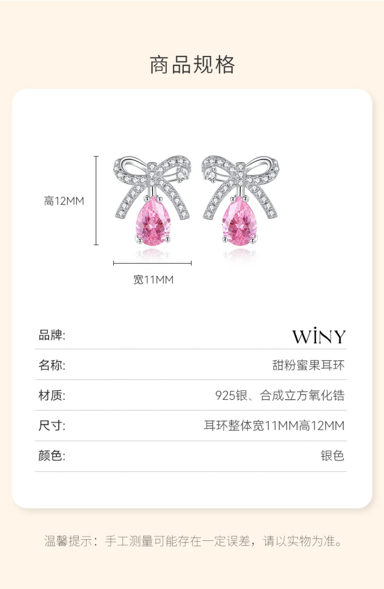 Winy925纯银甜粉蜜果耳钉送女友闺蜜节日生日礼物