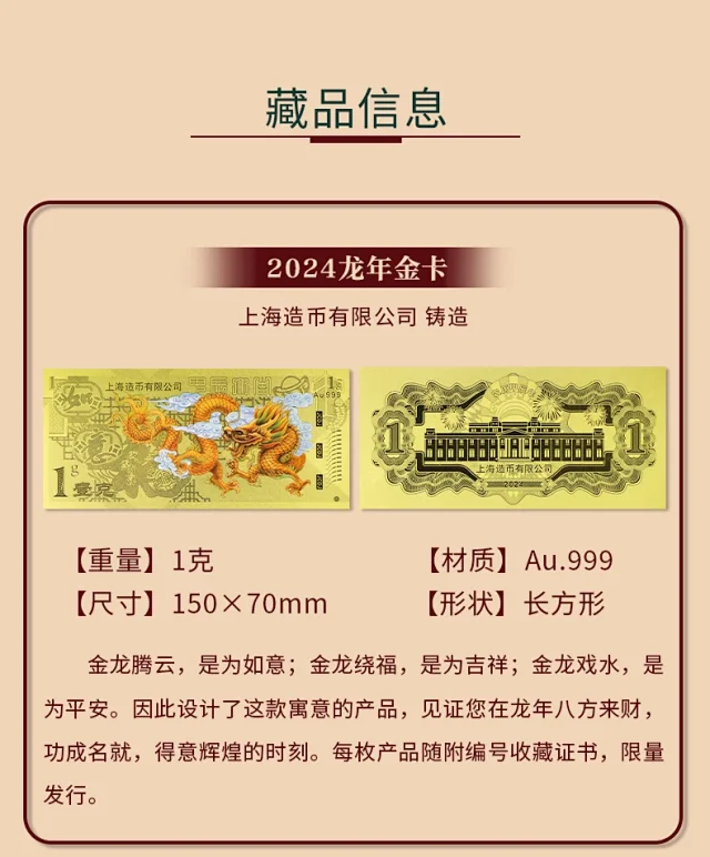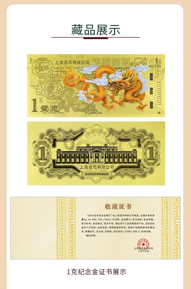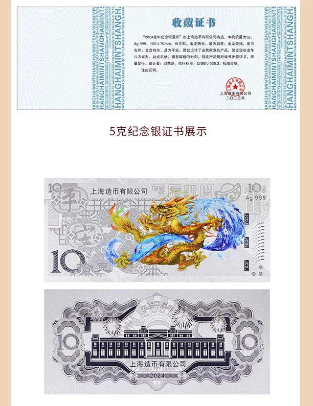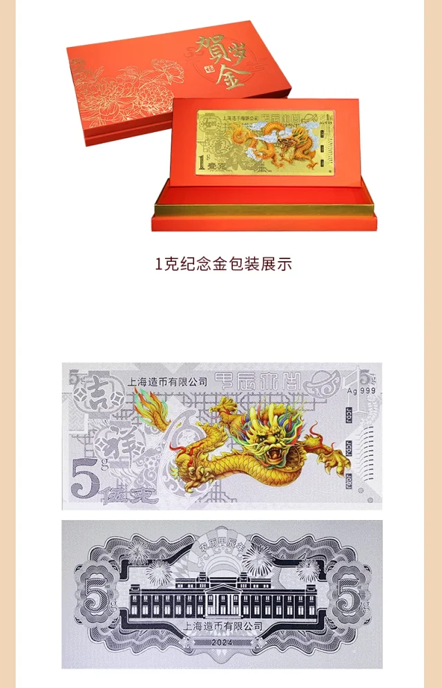 2024龙年生肖金银钞 上海造币 带包装