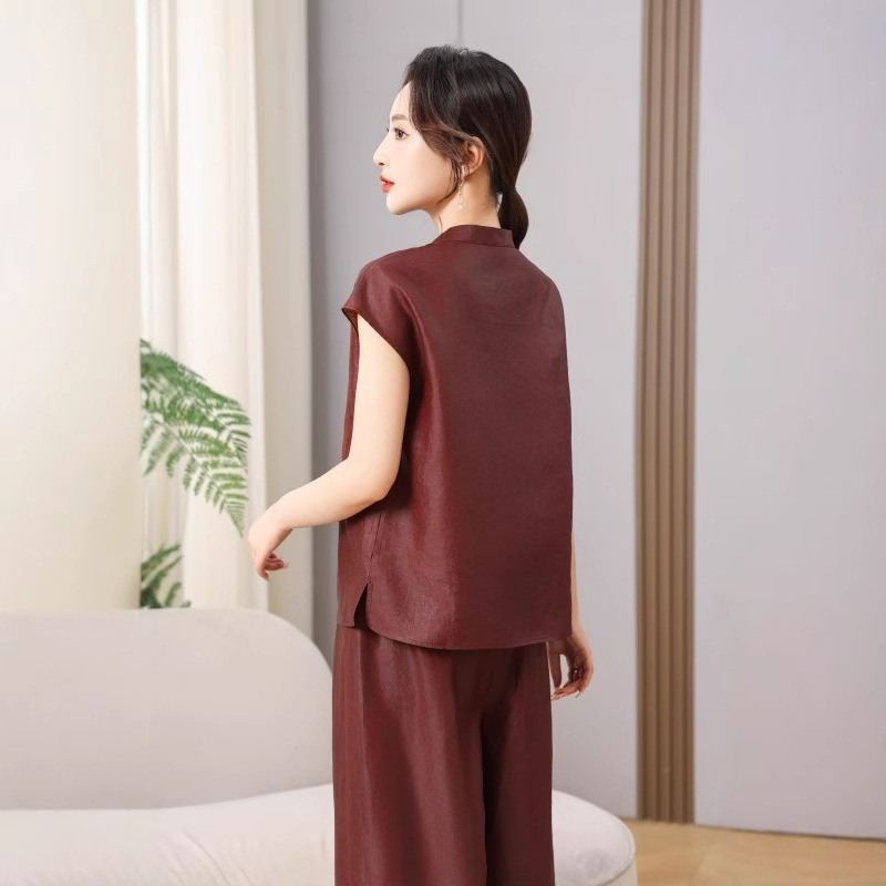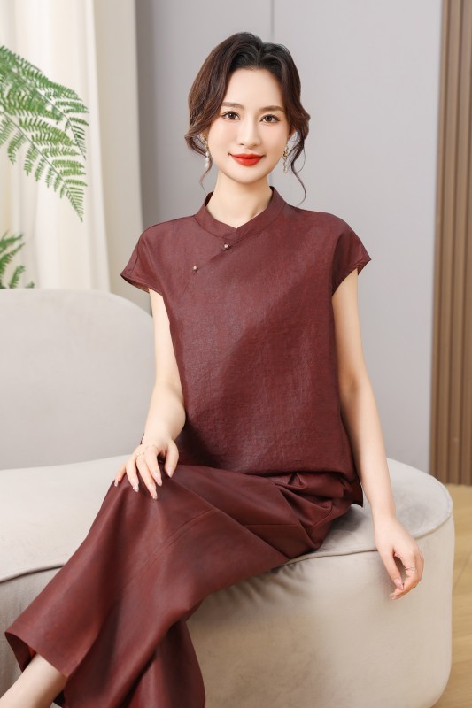 丁摩真丝红云纱龟裂纹短袖新款新中式高级时尚100%桑蚕丝T恤AL5111