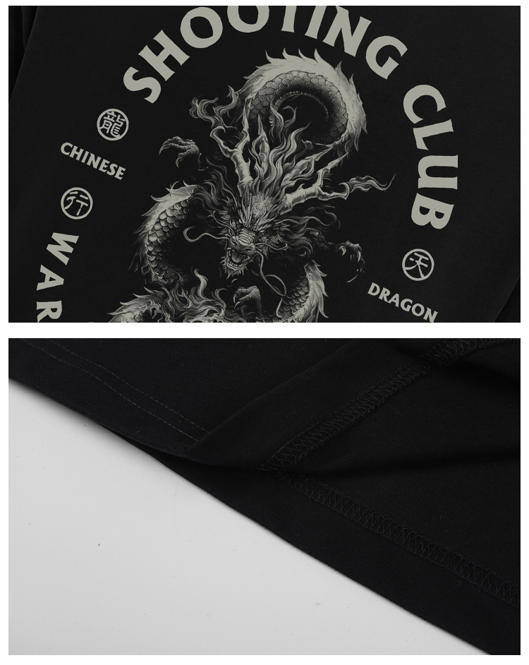 2024款复古机车夏新款简约情侣t恤中国龙印花合体短袖潮牌ins上衣 NMT-2109