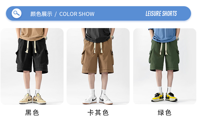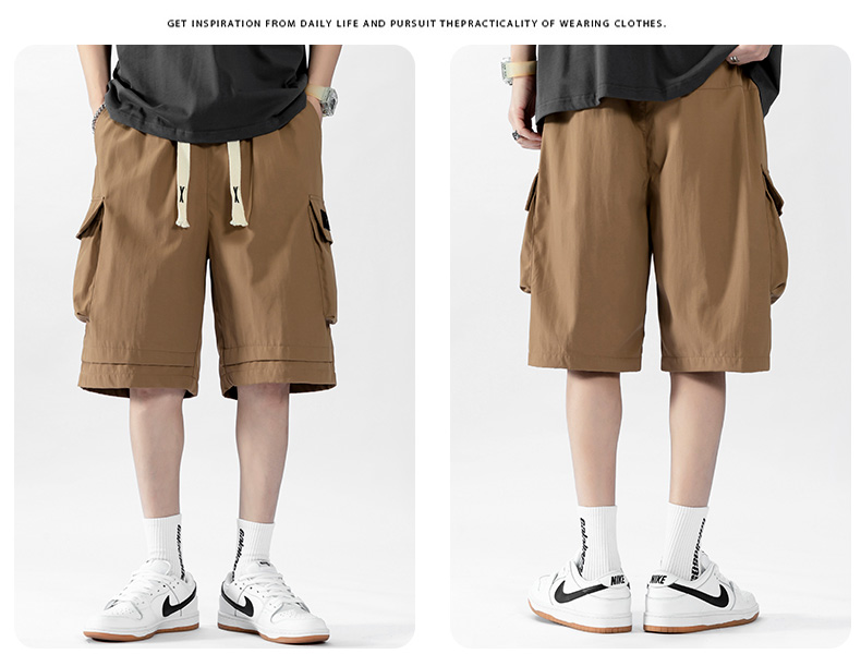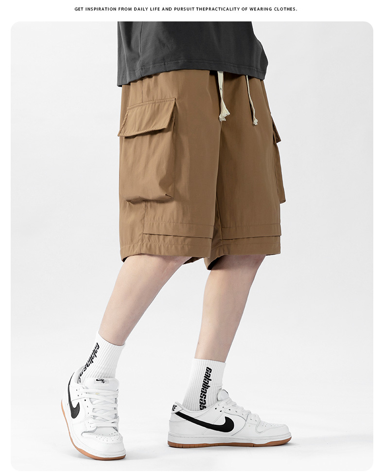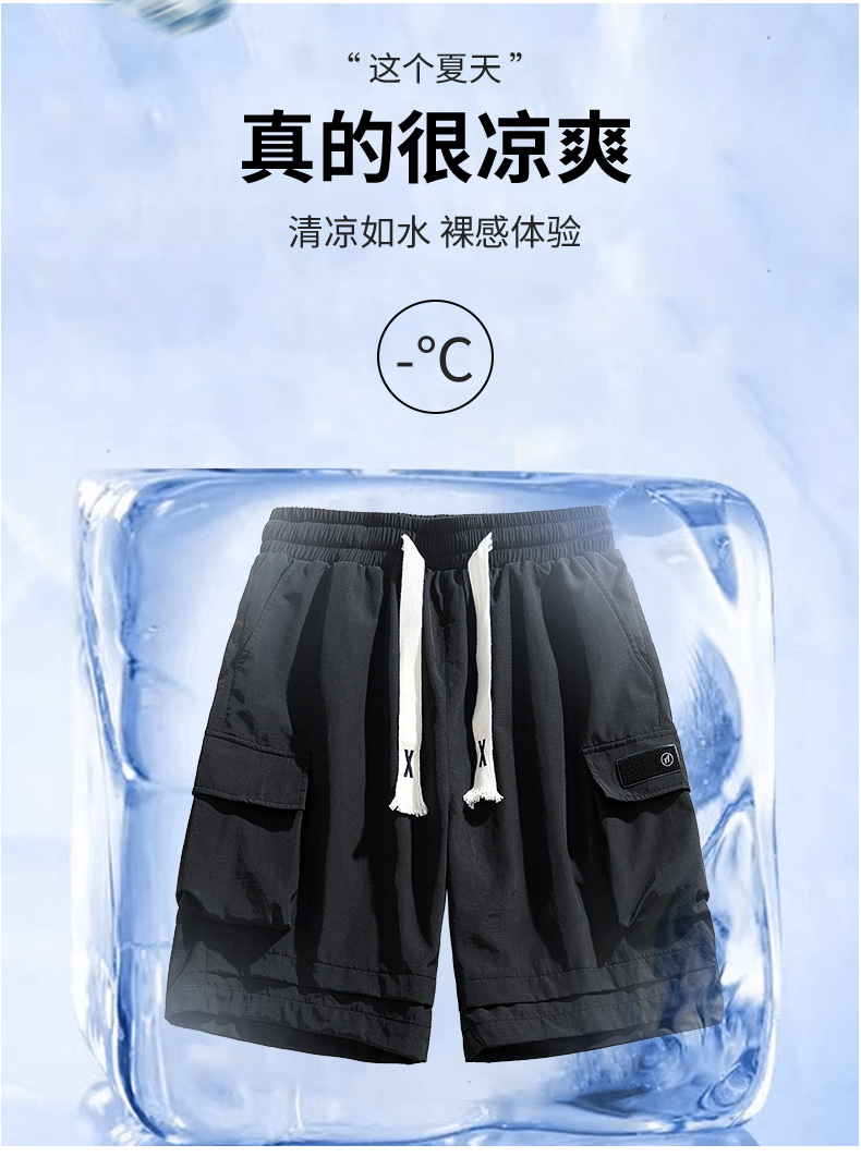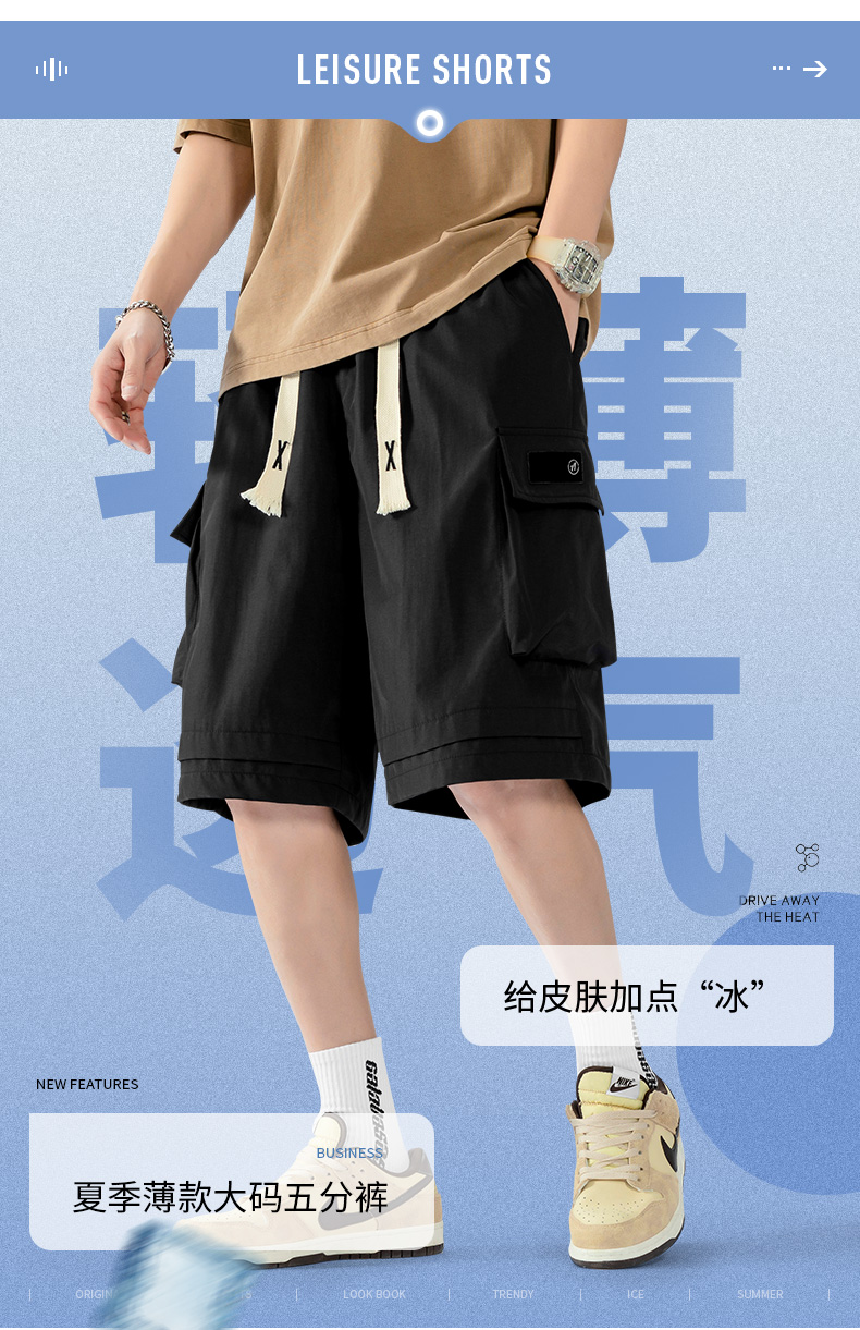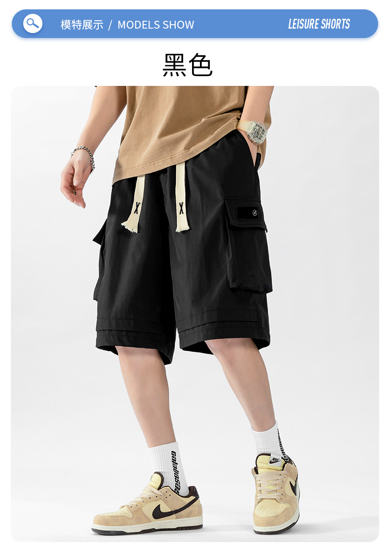 【新款DJR】大依优型大码五分裤工装短裤大号裤子弹力透气加肥加大夏季松紧腰宽松运动短裤沙滩裤