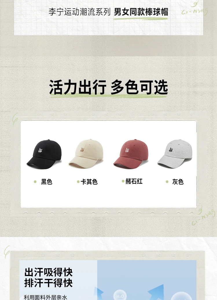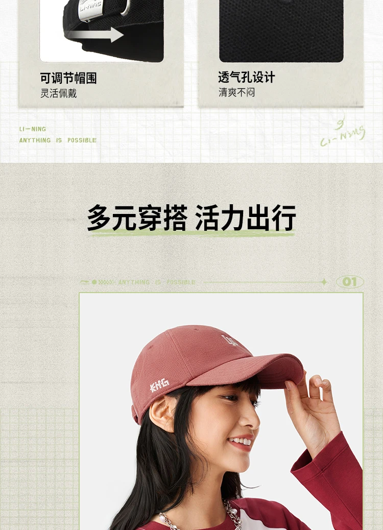 李宁运动生活系列吸湿排汗棒球帽AMYV017