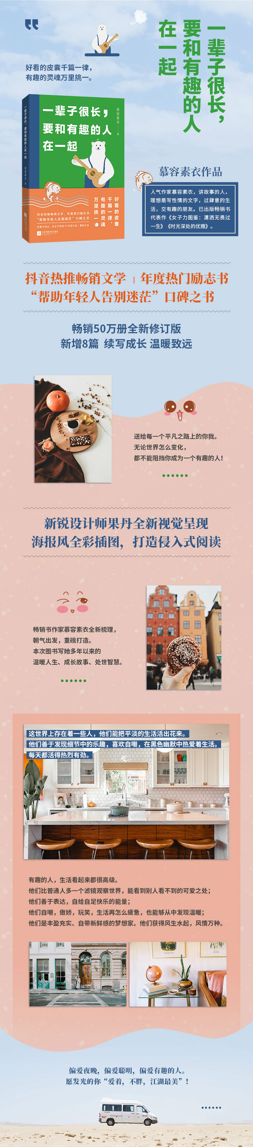 ◆集结《女孩如何度过20出头的穷困日子》《忘掉那些非如此不可的人生指南》《在追寻梦想的路上,什么时候出发都不算太晚》《和对的人在一起,连你的植物都会变得好起来》等朋友圈高赞热文,被 “人民日报”、“十点读书”等热门媒体竞相转载,热辣有趣中渗透暖意与深情的文风,引发万千读者热议。故事里的他们按自己的意愿活成喜欢的样子,不讨好所有人,不在不擅长的事情上死磕,不做拧巴的事,不过纠结的人生,活得格外有光芒。