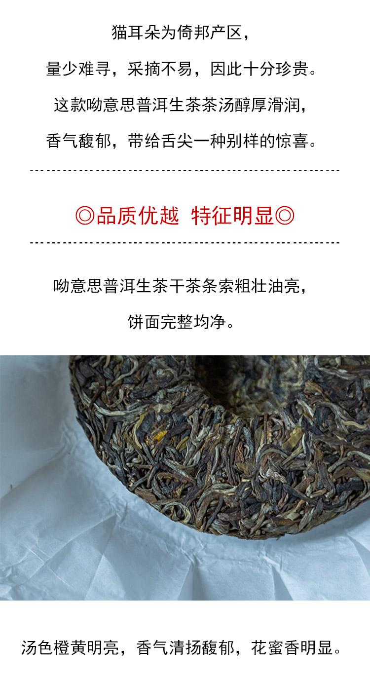 茶香记 呦意思普洱生茶 倚邦猫耳朵 小众茶 宜品宜收藏 品质优良 花香馥郁