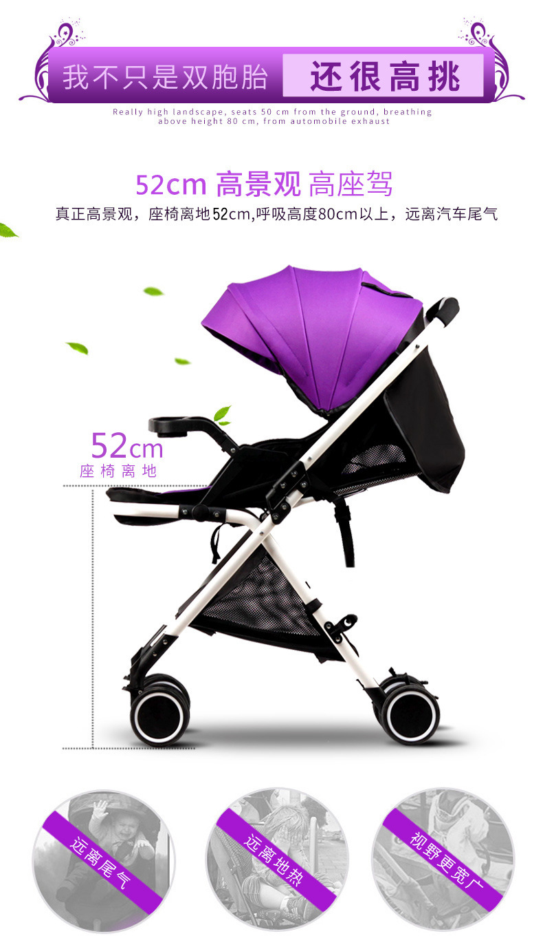 【婴儿车】双胞婴儿便携双胞可坐可躺轻便折叠可拆分超轻避震BB手推车