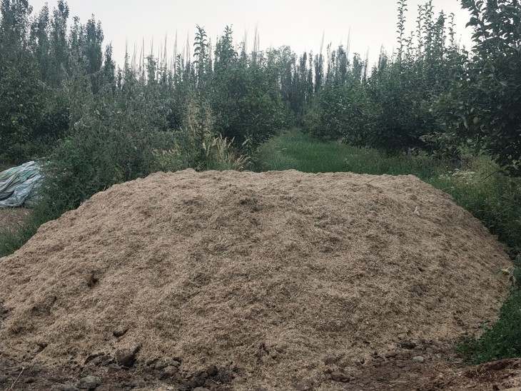 随后制作酵素放病驱虫,使用羊粪枯草发酵堆肥;用香梨的落果和次品果制作环保酵素,种植绿肥改良土壤;梨园留草,给虫子营造舒适的生活家园,虫草共生,遵循自然生态平衡的规律。泛滥的香梨树枝枯病,在刘大哥梨园很轻微。