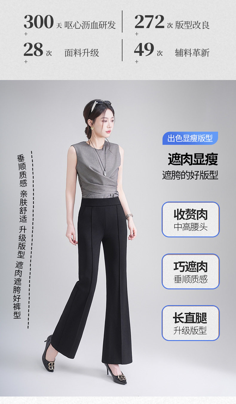 「自」全新升级【铂金会员146/天猫199/差价53】(01646)洛诗琳气质修身微喇裤女2026春季新款休闲通勤高腰显瘦长裤