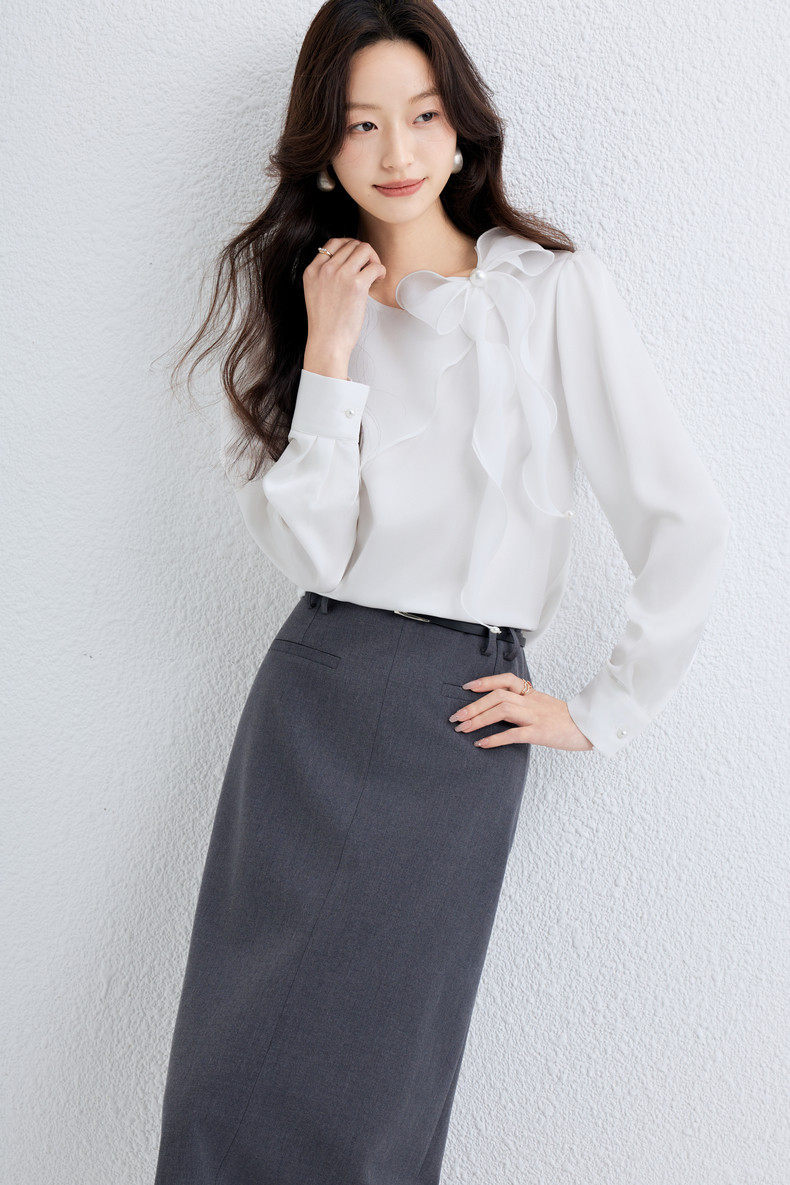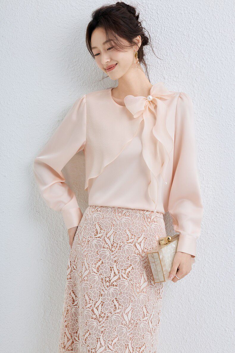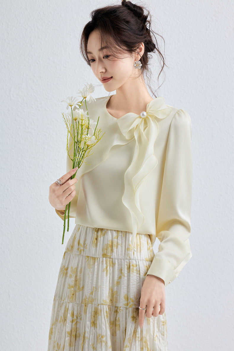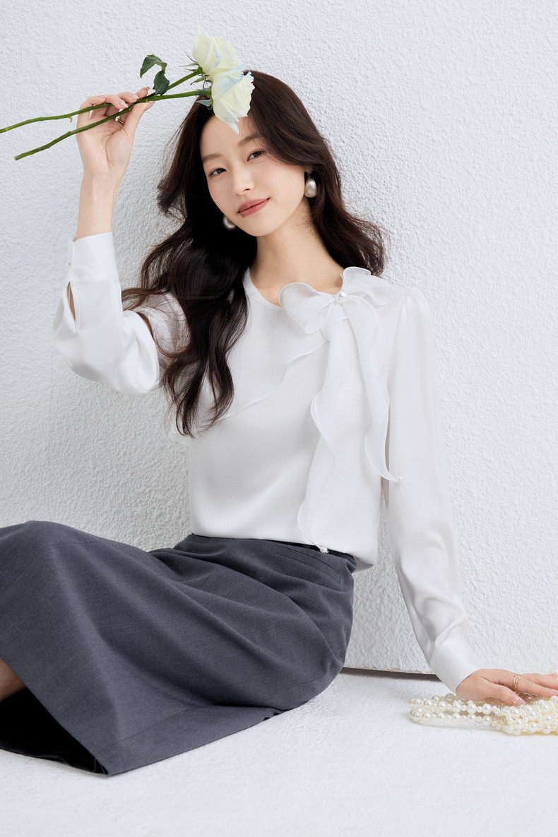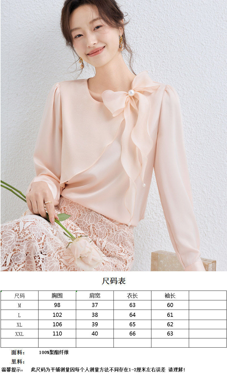 「自」全新升级【铂金会员174/天猫229/差价55】(10611)洛诗琳气质蝴蝶结雪纺衫女2026春季新款优雅圆领通勤衬衫