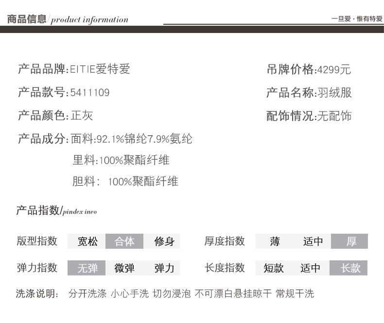 EITIE爱特爱春装女装都市时尚厚实羽绒服毛领中长款外套5411109