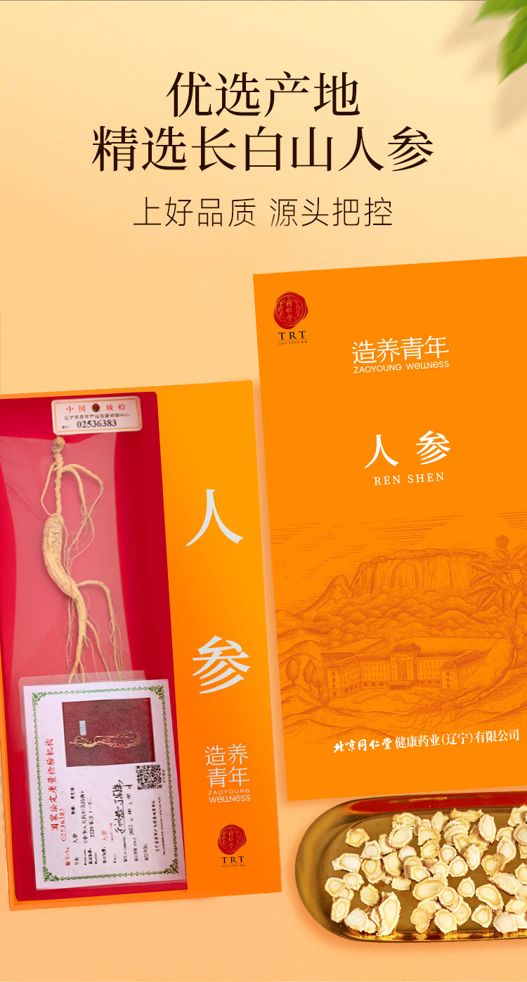 【正宗同仁堂品牌】北京同仁堂 人参-15g/盒移山参 送礼盒 长白山原产 防震防碎SY