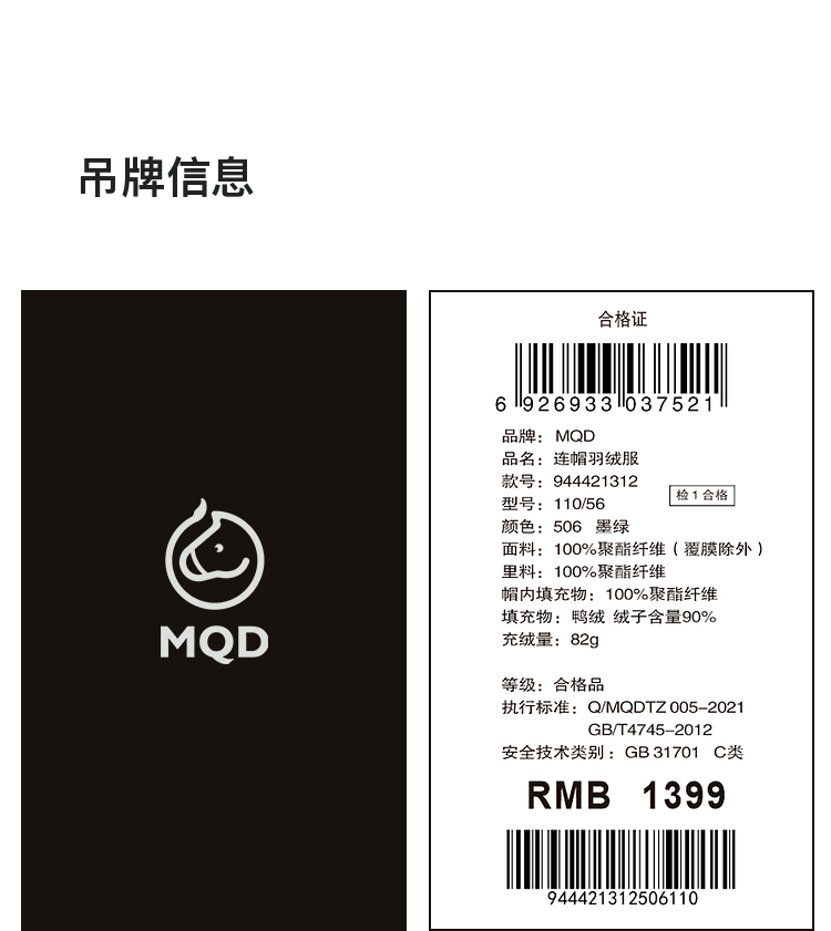 【MQD】【三防】马骑顿儿童羽绒服男童新款冬装连帽外套大童