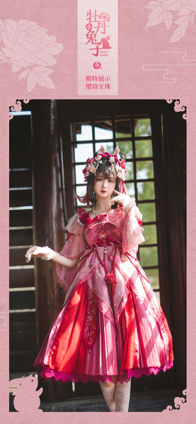 【积分兑换,60天内发货】牡丹小兔子 古典玩偶 Lolita