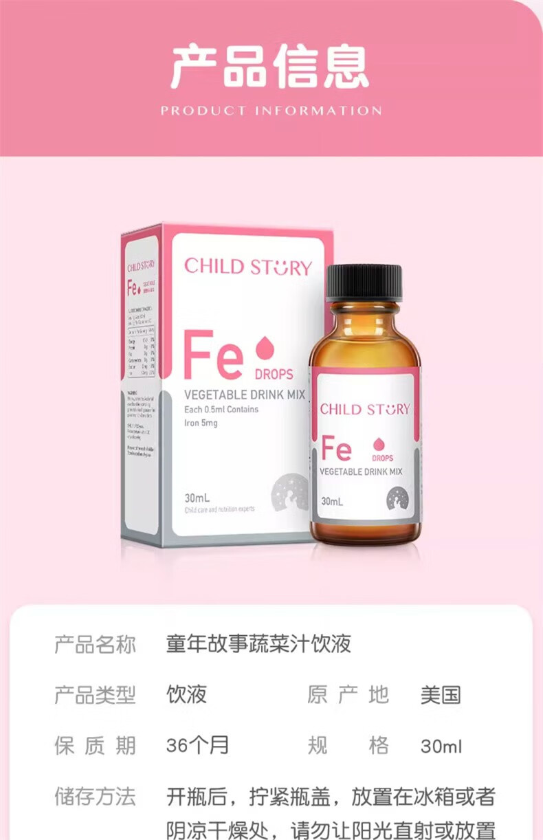 童年故事蔬菜汁饮液Fe滴剂30ml