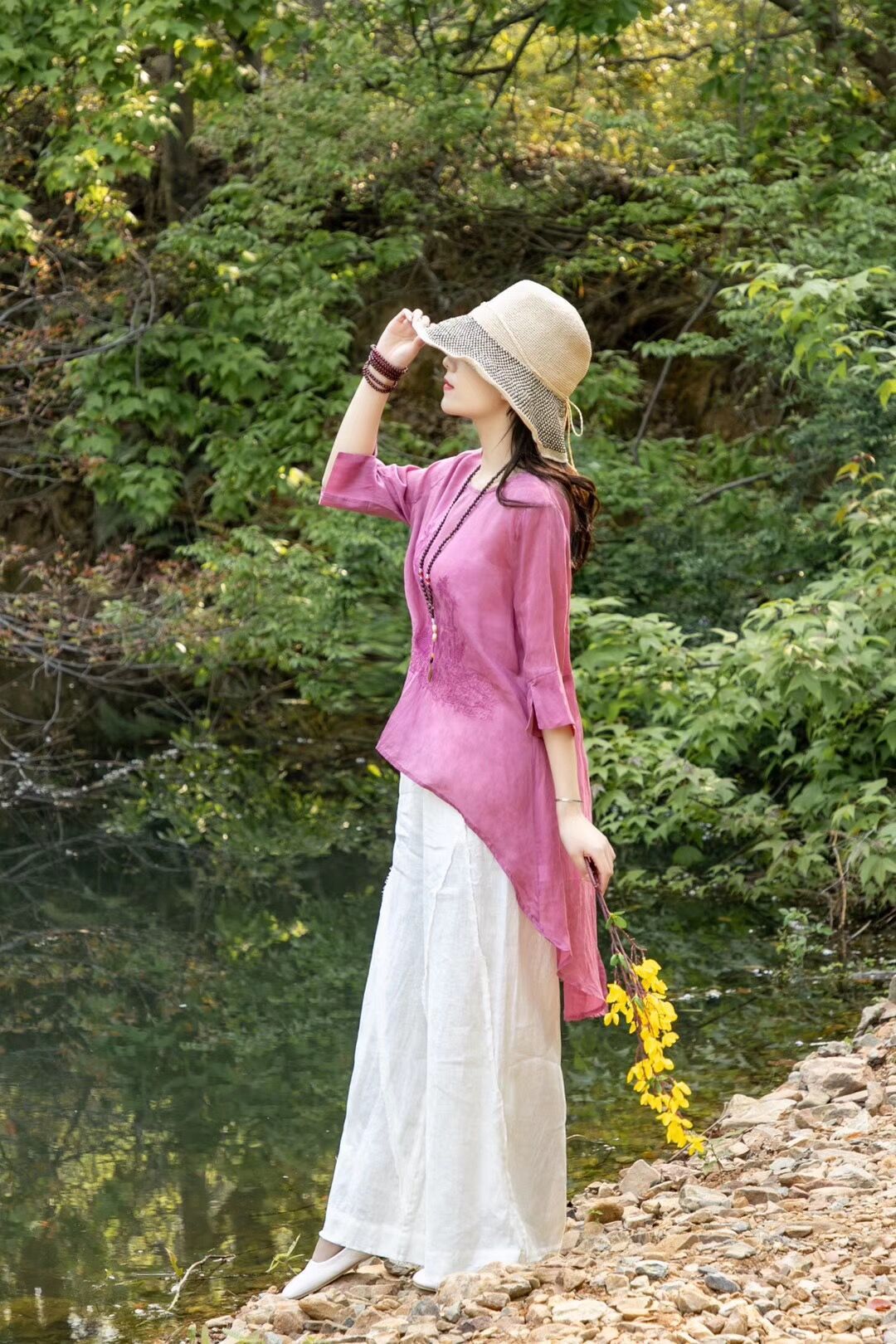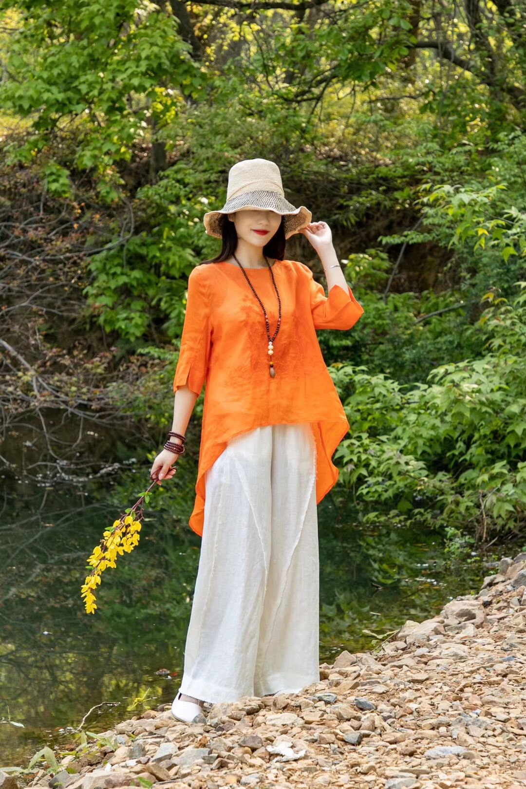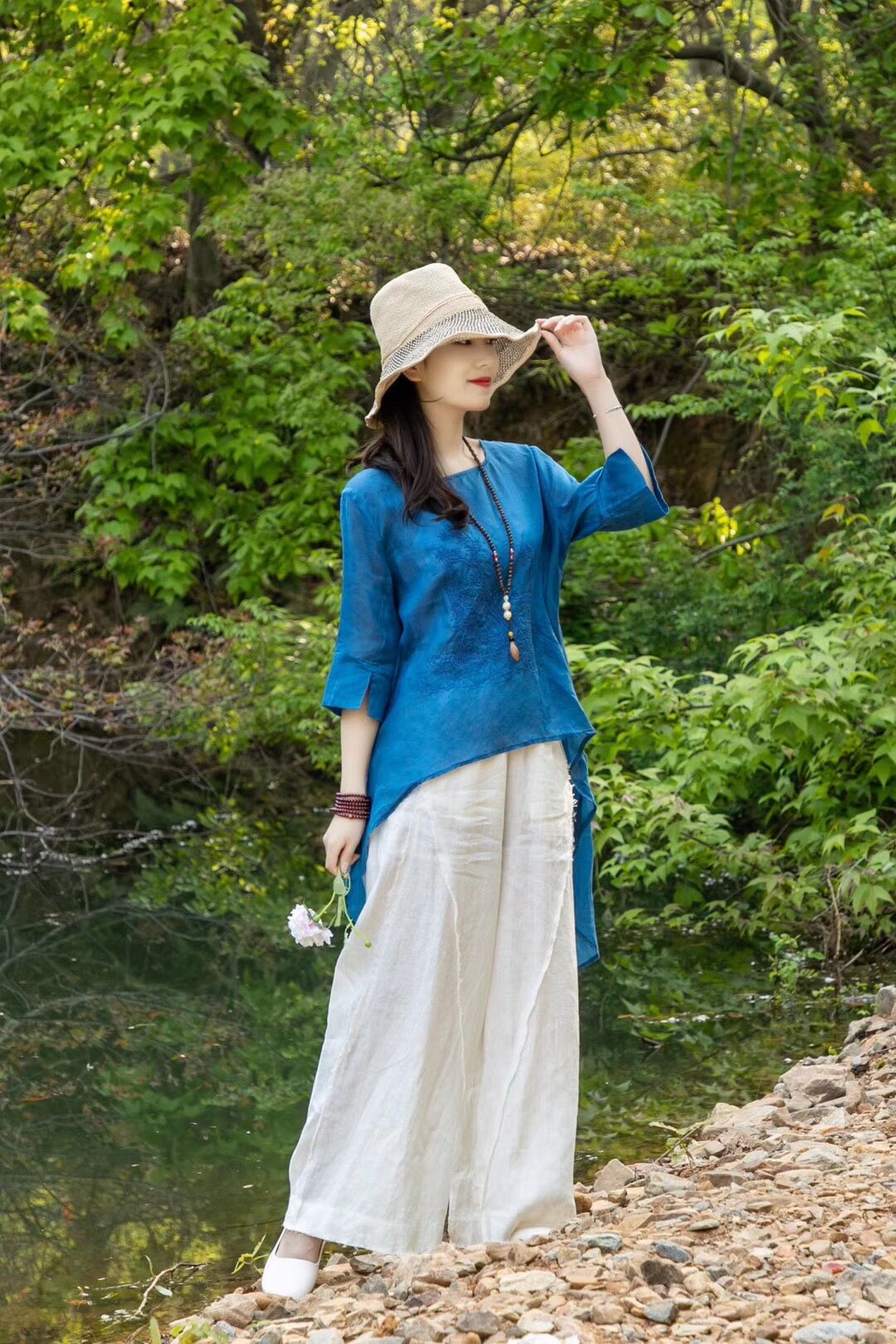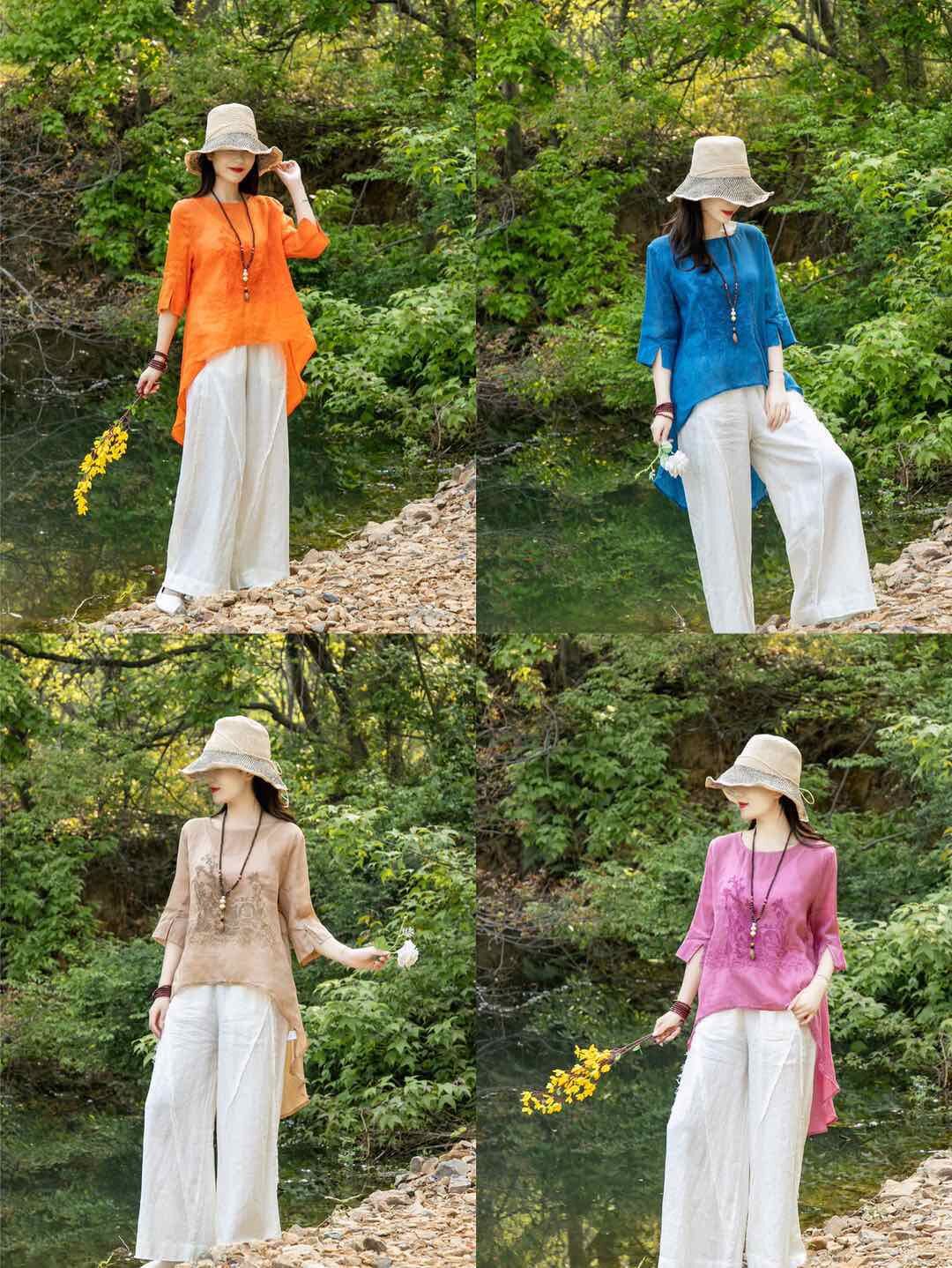 LPP-SG5139爆款原创 2020夏新款丝麻轻薄刺绣五分袖T恤燕尾上衣