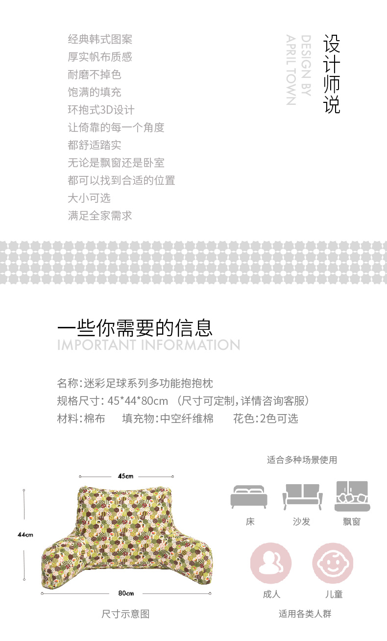 迷彩足球大白多功能靠枕沙发床头飘窗靠背