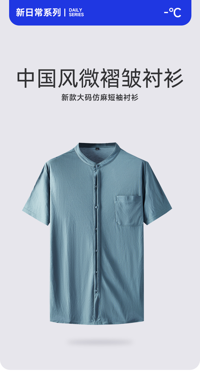 一口价【新款DDP】大依优型大码中国风复古仿麻微褶皱短袖衬衫加肥加大弹力透气宽松休闲男装半袖