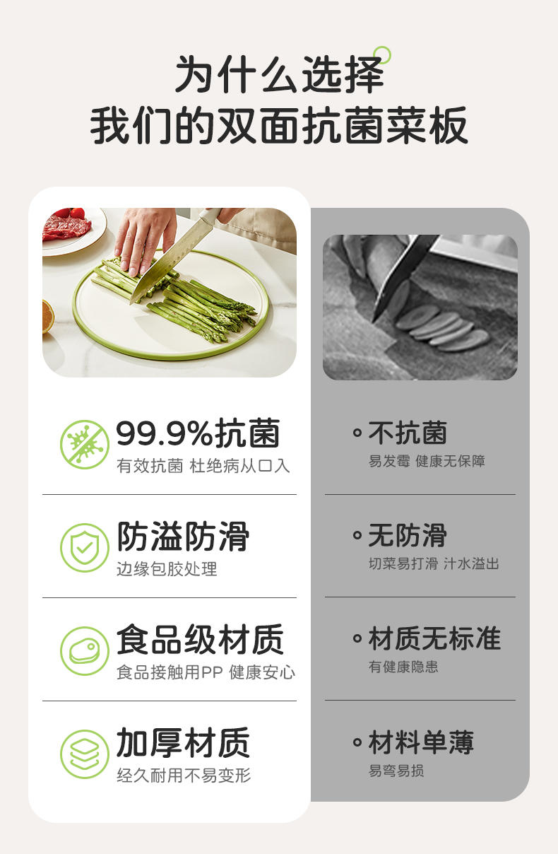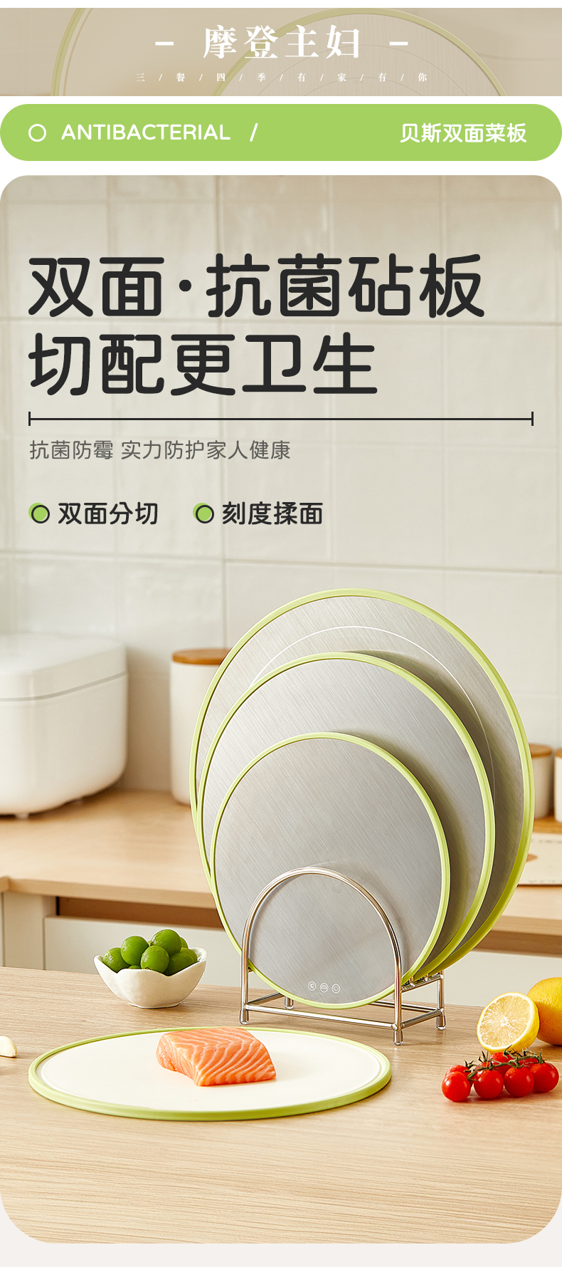 摩登主妇双面菜板厨房抗菌防霉食品级不锈钢切菜案板家用水果砧板