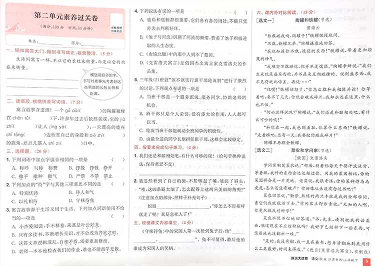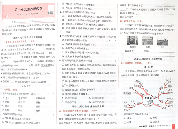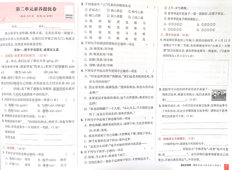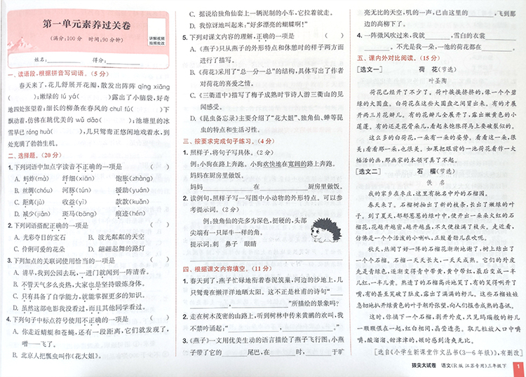 2025春 拔尖大试卷 语文三年级下册 配人教版 小学教辅 3下小学试卷 答案讲解视频 学生用书江苏专版 浙江少年儿童出版社