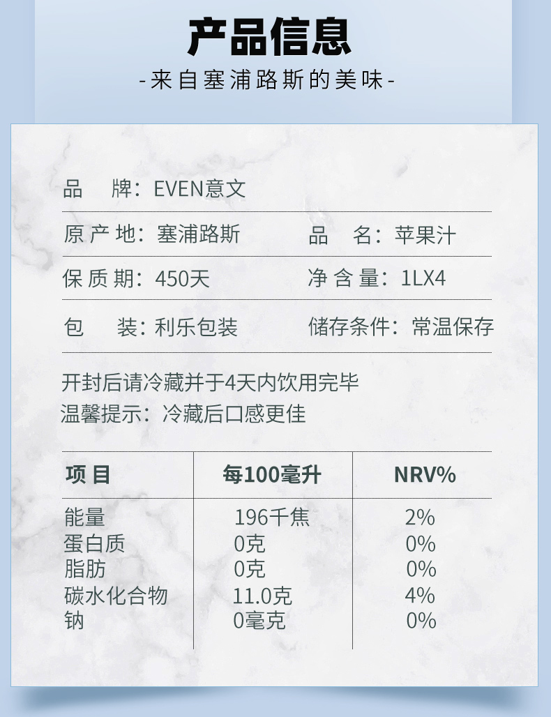 意文(EWEN) 塞浦路斯进口 苹果汁 1L/盒