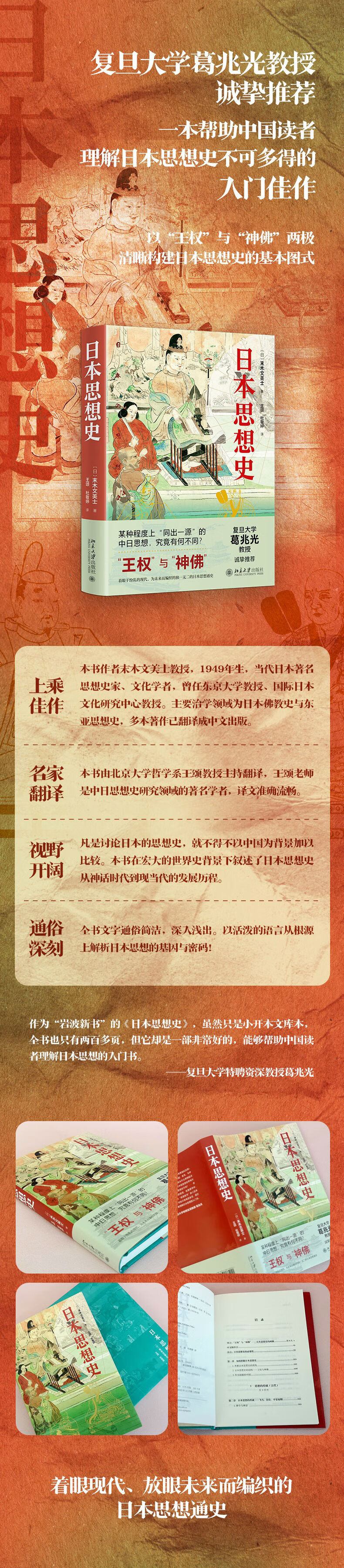 末木文美士,1949年生于日本山梨县甲府市,当代日本著名思想史家、文化学者,曾任东京大学教授、国际日本文化研究中心教授。主要治学领域为日本佛教史与东亚思想史。代表著述有《佛教——言语的思想史》《日本佛教思想史论考》《日本佛教史》《镰仓佛教形成论》《近代日本与佛教》《佛教vs.伦理》《日本宗教史》《现代佛教论》等,其中多本著作已翻译成中文出版。