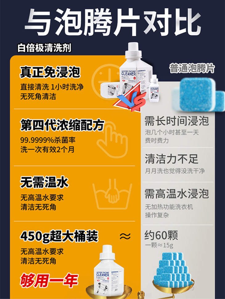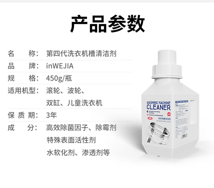 【即时清洗 无需等待】INWEJIA洗衣机槽清洁剂 多款规格可选 免浸泡配方 酵素去污 活性氧除污去味 定量不浪费