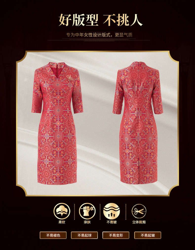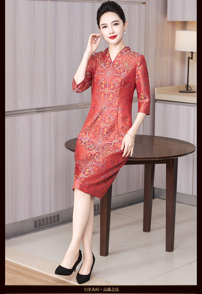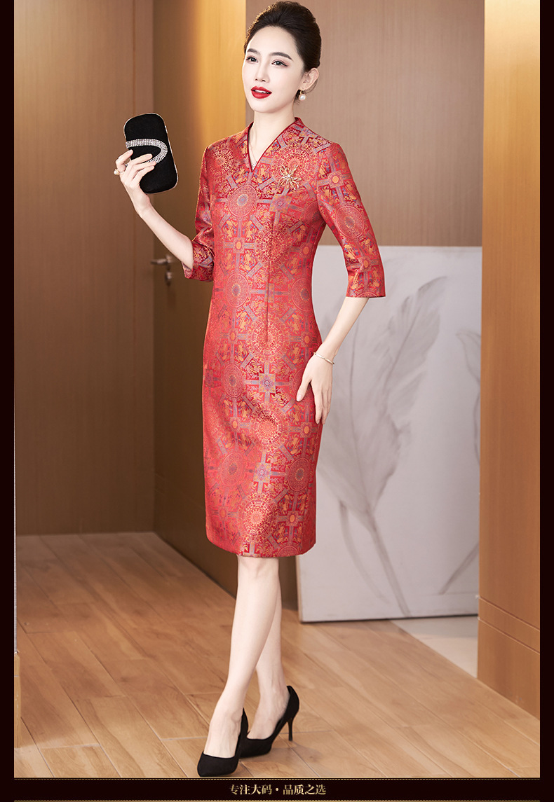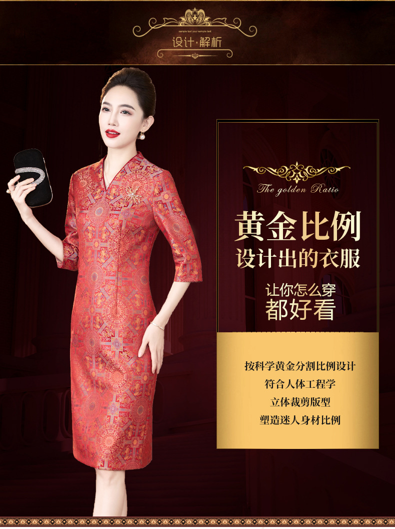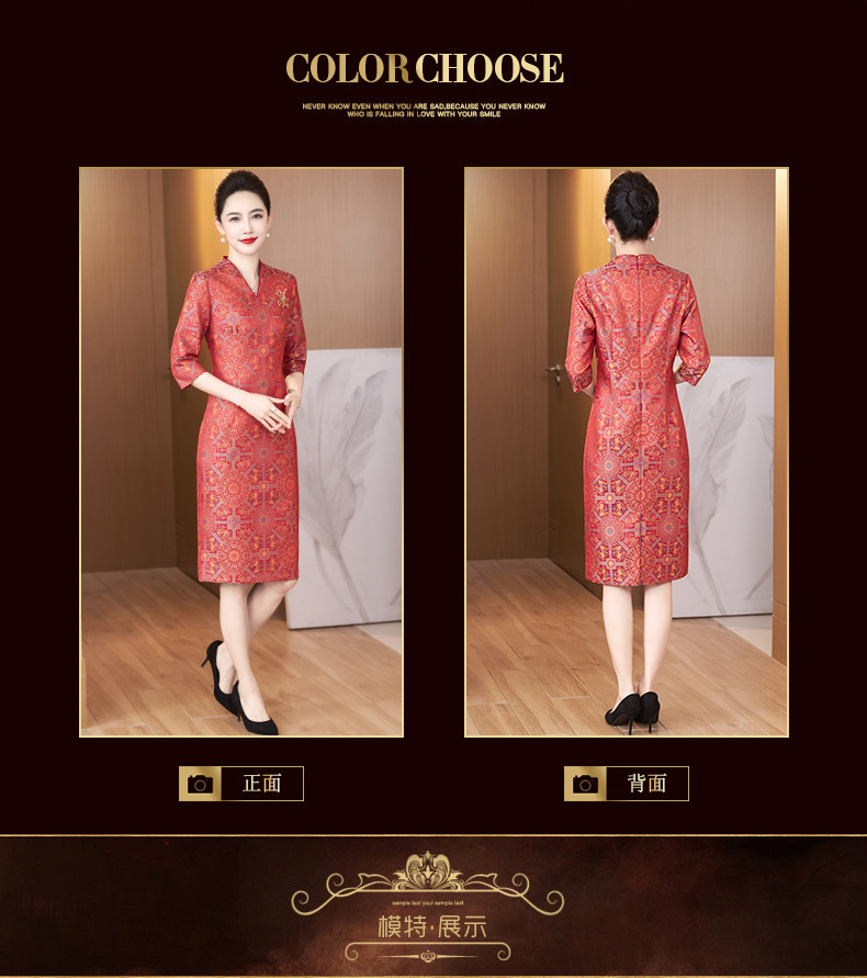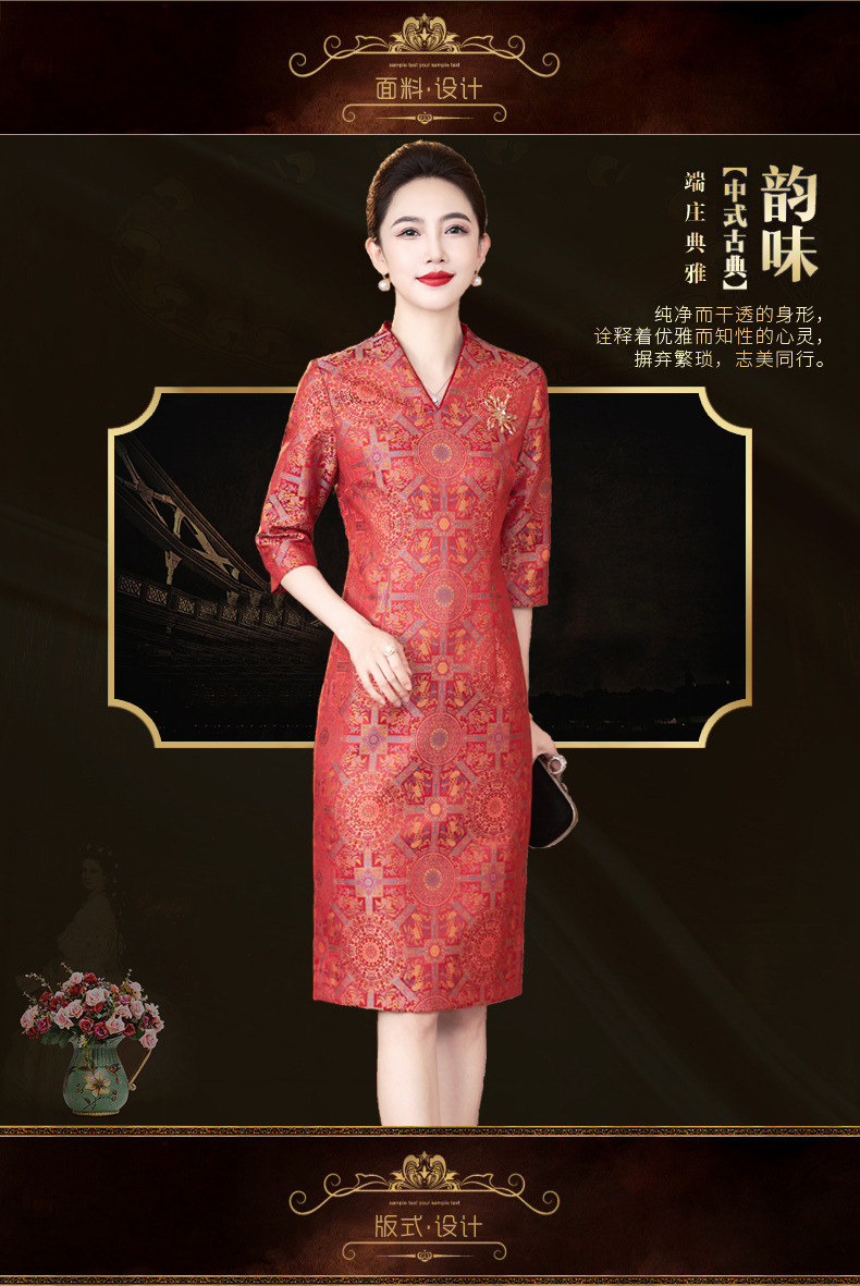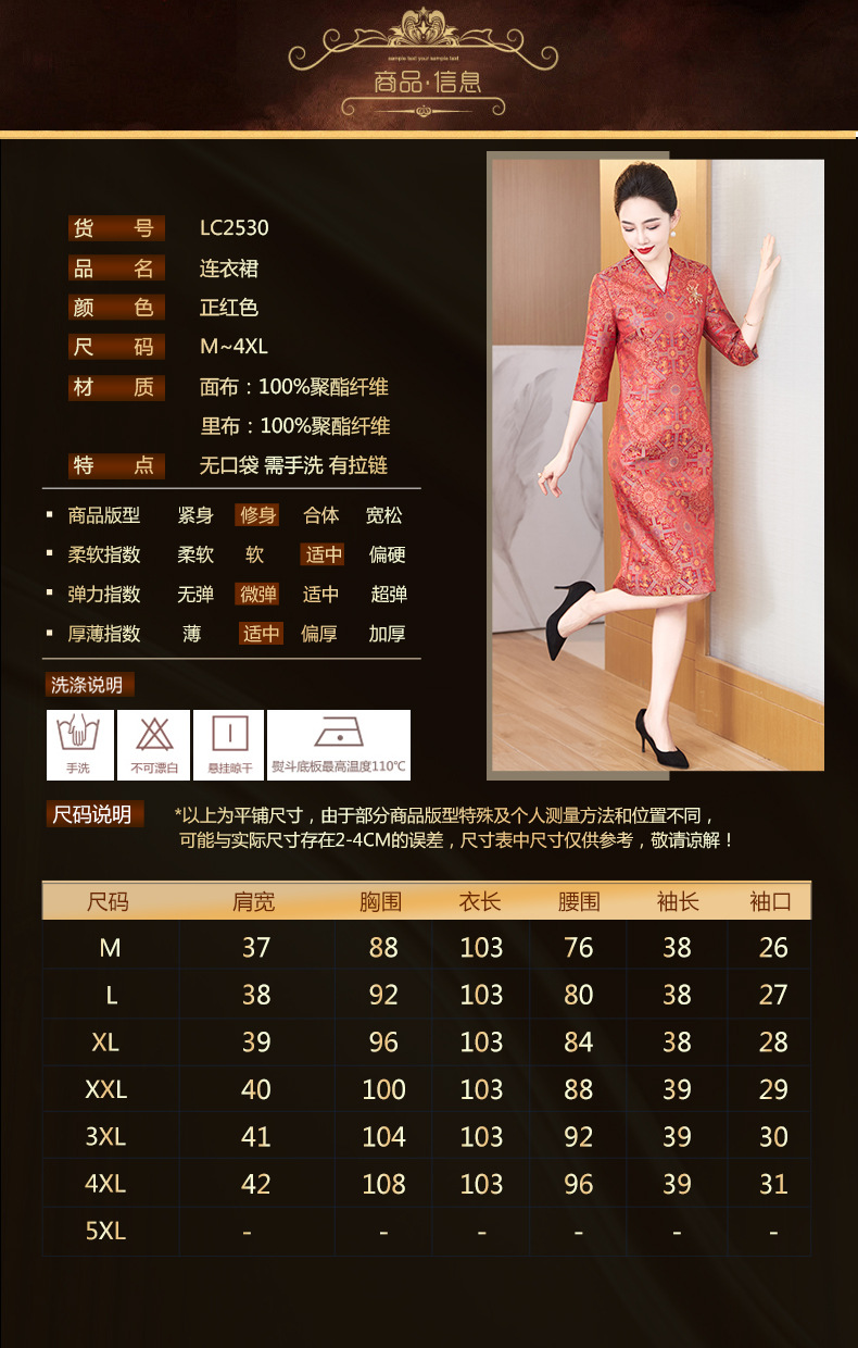 LC 2530正红国风旗袍裙妈妈装时尚款