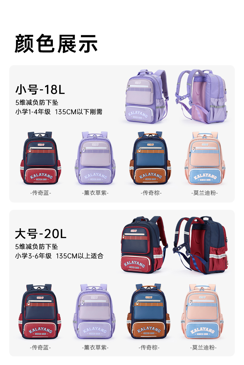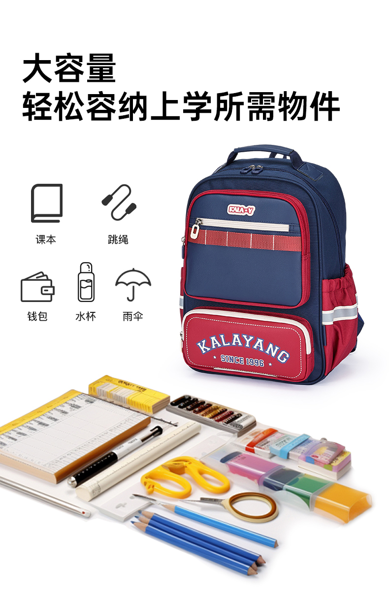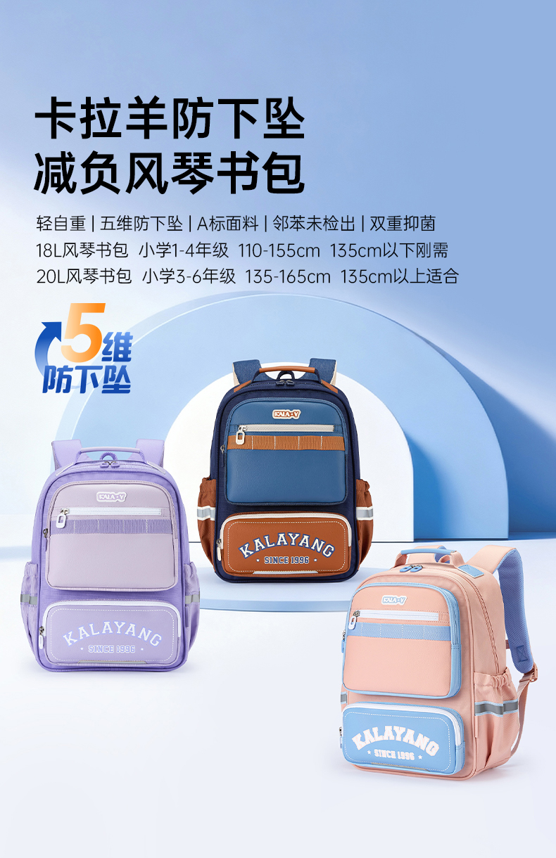 卡拉羊小学生5维减负防下坠风琴书包大容量双肩背包嘉年华系列CX2282+2552